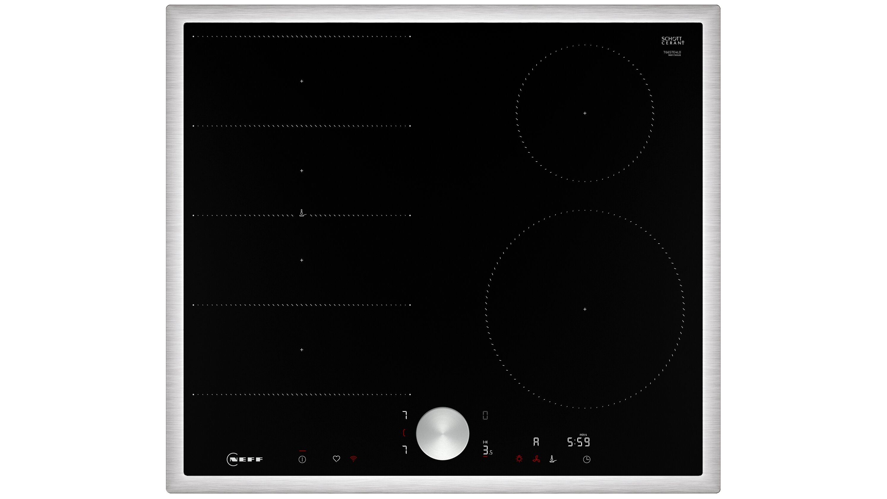 Válasszon egyet az öt hőfokozat közül és a főzőlap jelzi, ha a serpenyő elérte a megfelelő hőmérsékletet. Az Extended Frying Sensor folyamatosan figyeli a serpenyőt, állandó hőmérsékletet biztosít, és megakadályozza, hogy az étel odaégjen. És ha a főzőlap csatlakozik a Home Connect apphoz, a szabadság új szintjét tapasztalhatja meg: válasszon ki egy receptet a Foodfitteryben és továbbítsa az Extended Frying Sensor beállításait a főzőlapra. Tudni fogja, mit kell tennie. Sütés, könnyedén.