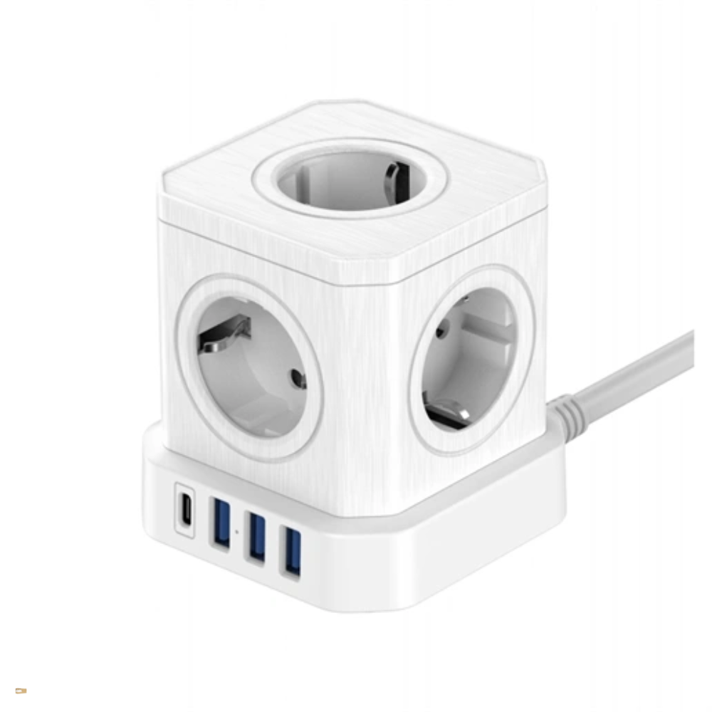 A kocka úgy lett kialakítva, hogy stabilan és biztonságosan kezelje a nagyobb terheléseket is, miközben az USB-portok külön optimalizált teljesítményt biztosítanak a mobil eszközöknek.