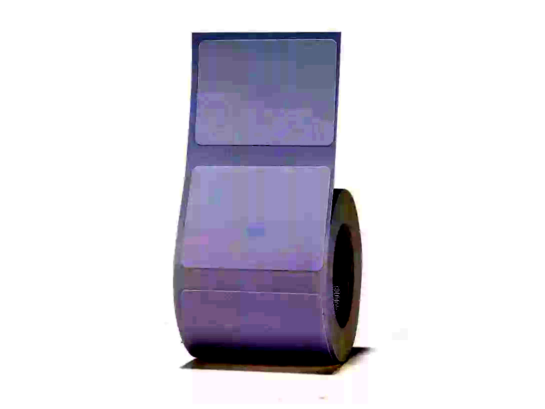 Papír alapanyagú 40 * 20 mm tekercses öntapadós etikett címke, Normál ragasztó, belső átmérő 40 mm, külső tekercsátmérő 112 mm, 1300 címke/tekercs, Fehér színű nyomatlan címke