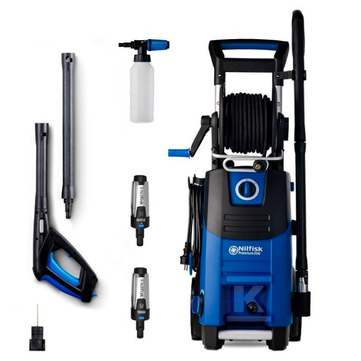 A Premium 200-as mosó, a legnagyobb és legerősebb a termékcsaládban, a nagyobb és nehezebb tisztítási feladatokkal is megbirkózik. A hihetetlenül erős, 200 bar maximális nyomással és 15 m hosszú acélkaros tömlővel minden alkalommal garantált a professzionális szintű eredmény.