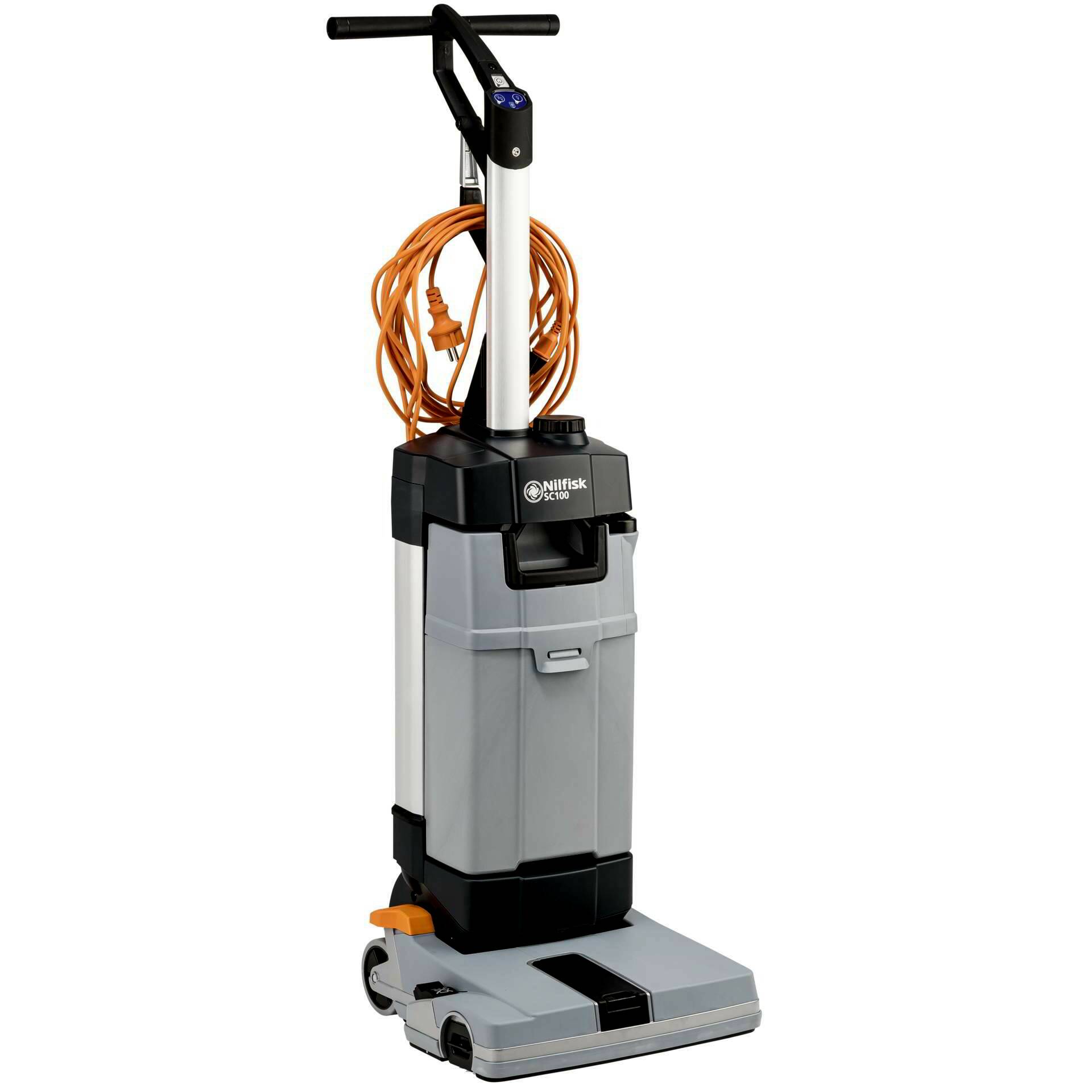 A kis helyeken való takarítás mestere, a Nilfisk SC100 kisméretű padlótisztító kijelződik a szűk területek alapos tisztítására. A moppal történő takarításhoz képest az SC100 gyorsabb, hatékonyabb és termelékenyebb tisztítást kínál.