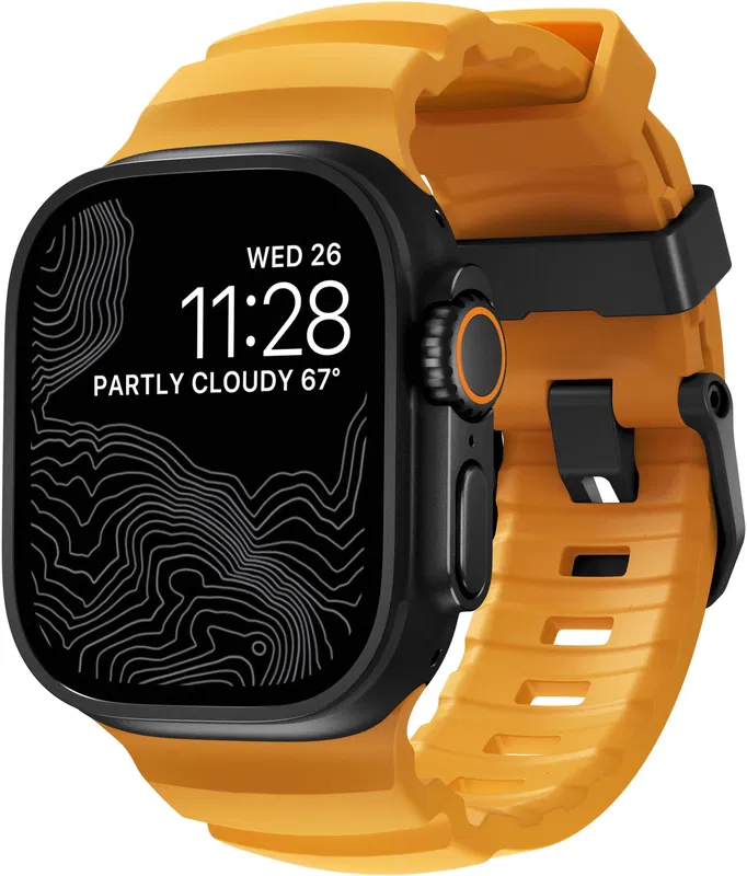 Ez a sárga színű szilikon szíj a népszerű Nomad gyártótól tökéletes választás, ha egyszerre szeretnéd hangsúlyozni okosórád sportos és elegáns oldalát.