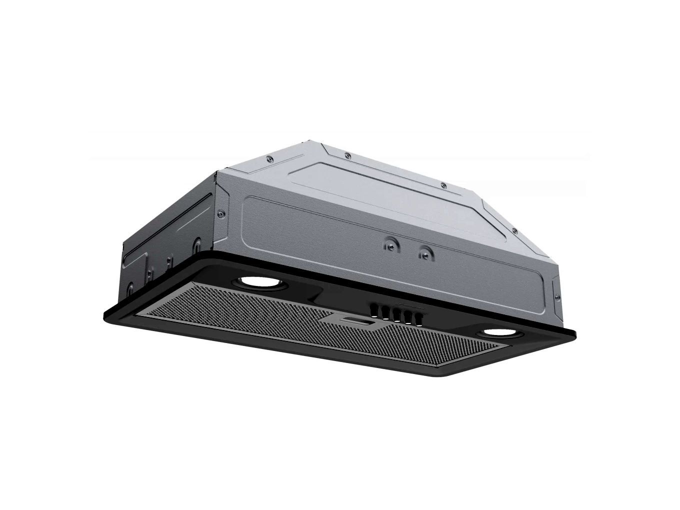 Fekete üvegkerámia, konyhaszekrénybe építhető integrált kialakítású, kapcsolós vezérléssel.