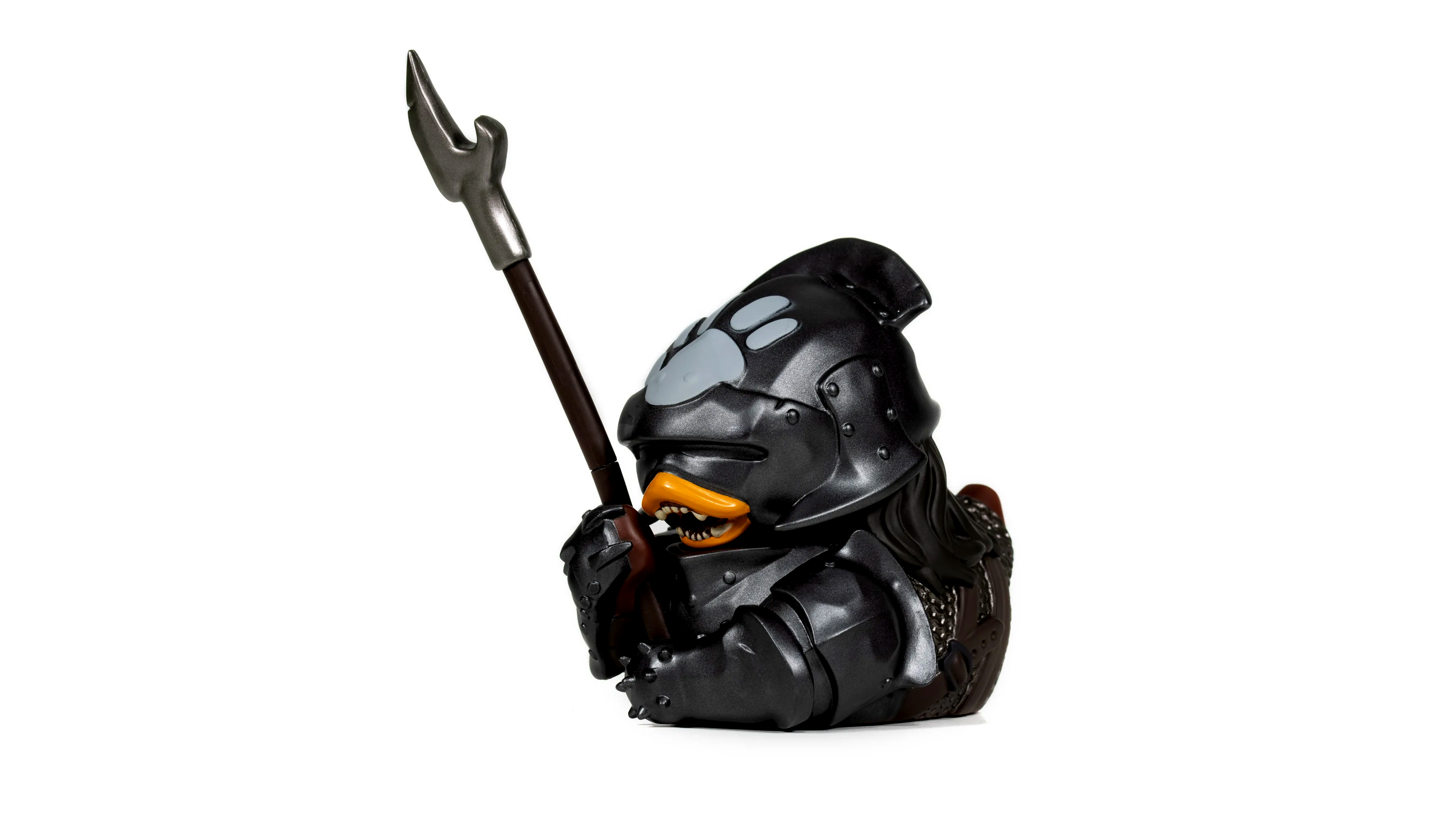 A Uruk-hai Lándzsás gumikacsa figura a Numskull népszerű Tubbz sorozatának egyik sötétebb, harcos karaktere. A figura a filmekből ismert Uruk-hai harcos jellegzetes sisakjával, páncélzatával és lándzsájával jelenik meg, mindezt játékos, gumikacsa formába öntve. A részletes kidolgozás, az arcvonások, a páncél textúrái és a színezés mind az eredeti karakter hangulatát idézik meg.