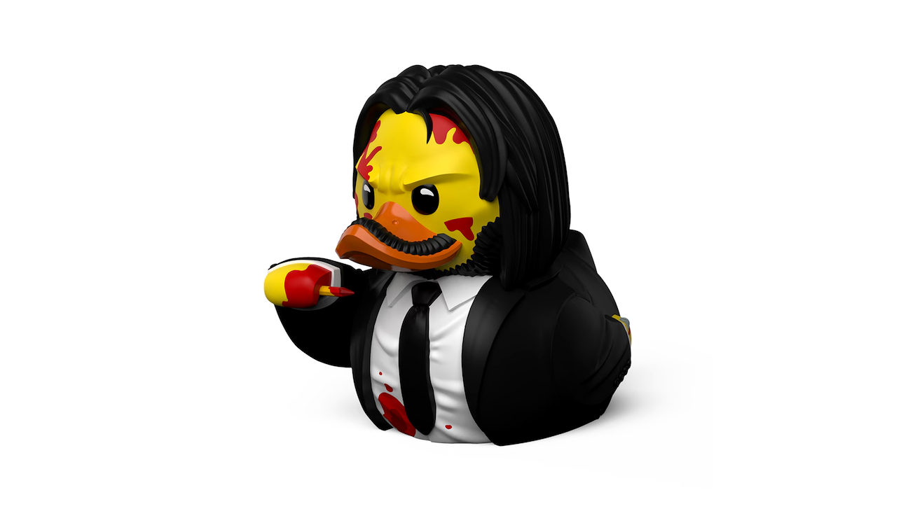 • Különleges crossover dizájn: John Wick karaktere gumikacsa formában, humoros, mégis hűséges stílusban ábrázolva