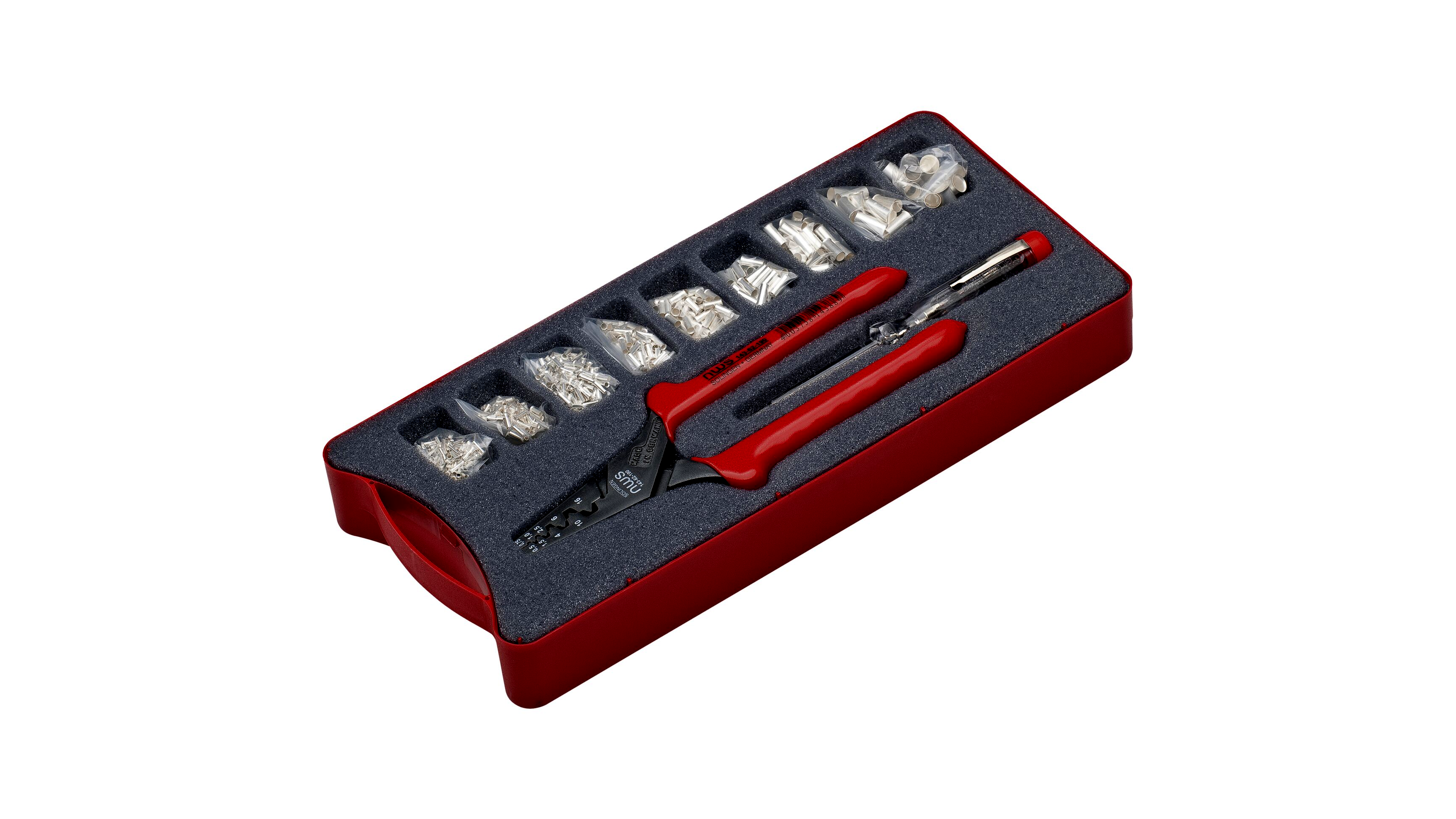 Ez a praktikus készlet tartalmazza az NWS 143-BS krimpelő fogót és egy 302 darabos érvéghüvely szortimentet, így mindened meglesz a professzionális kábelcsatlakozásokhoz.