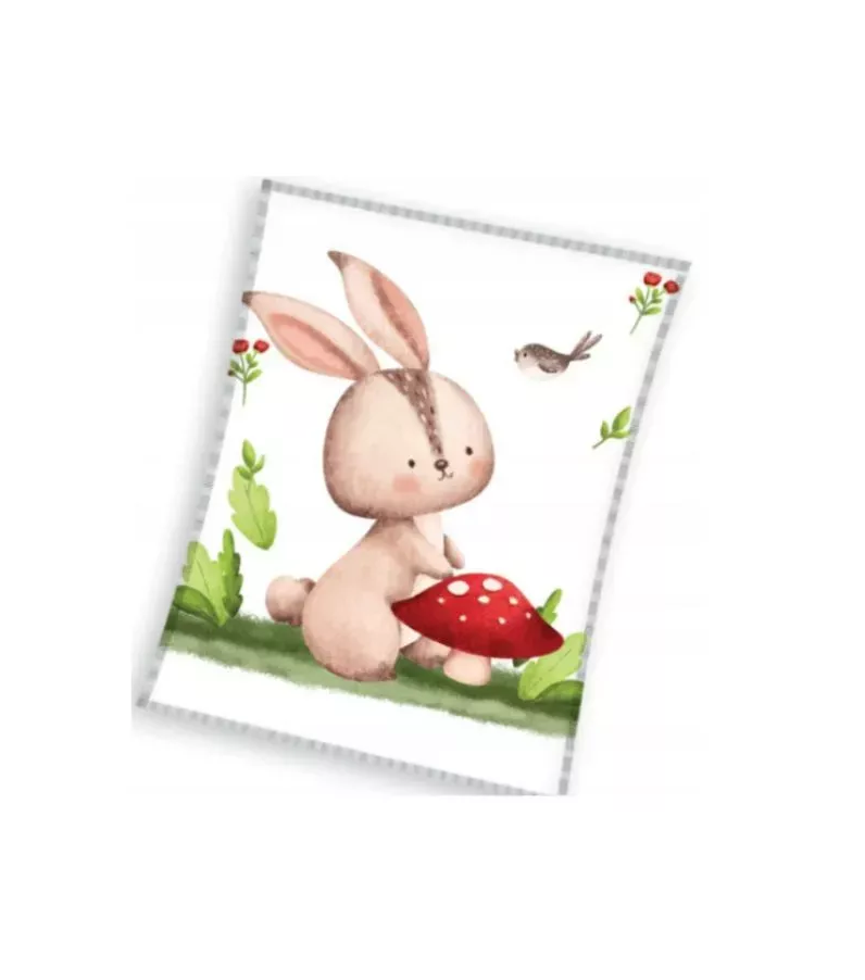 Ez a bájos, nyuszi mintás gyerek pléd gyengéd melegséggel és különleges puhasággal öleli körbe a gyerekeket. Ideális választás délutáni pihenéshez, esti meséhez, utazáshoz vagy akár a babakocsiba, miközben vidám, játékos mintájával a kicsik kedvenc takarójává válhat.