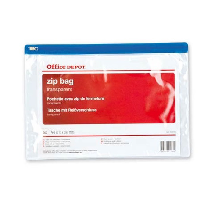 Az Office Depot áttetsző cipzáras tasak az irodai és otthoni használatra tervezett praktikus tárolási megoldás Ideális választás különféle apróságok, iratok és írószerek rendszerezésére és biztonságos tárolására.