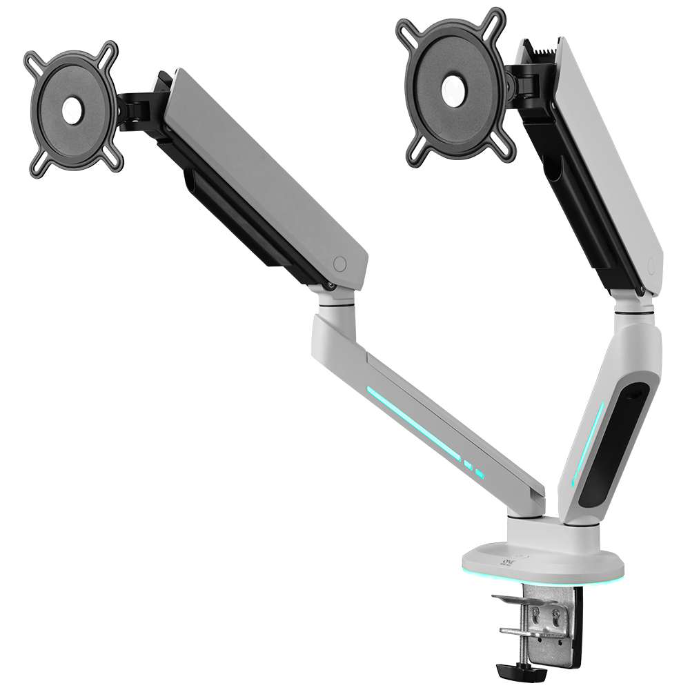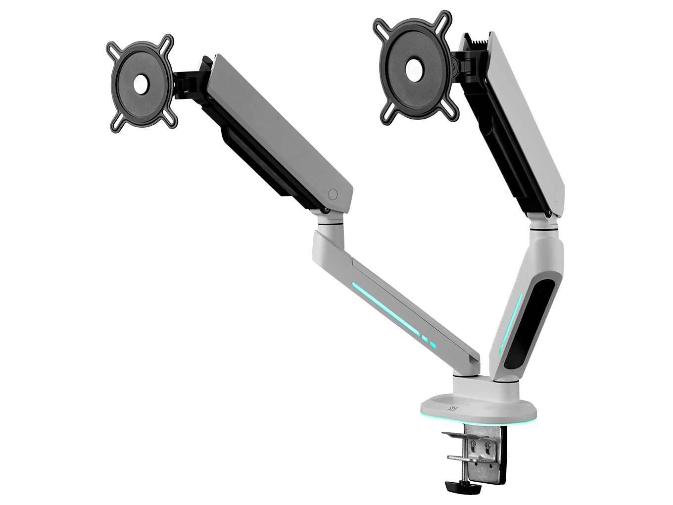 Ha két monitorod van, de kevés a hely, alakítsd át gaming tered egy elegáns környezetté kettős monitor tartónkkal. Könnyen rögzítheted mindkét monitort egymás mellé, ezzel értékes helyet szabadítva fel az asztalon.