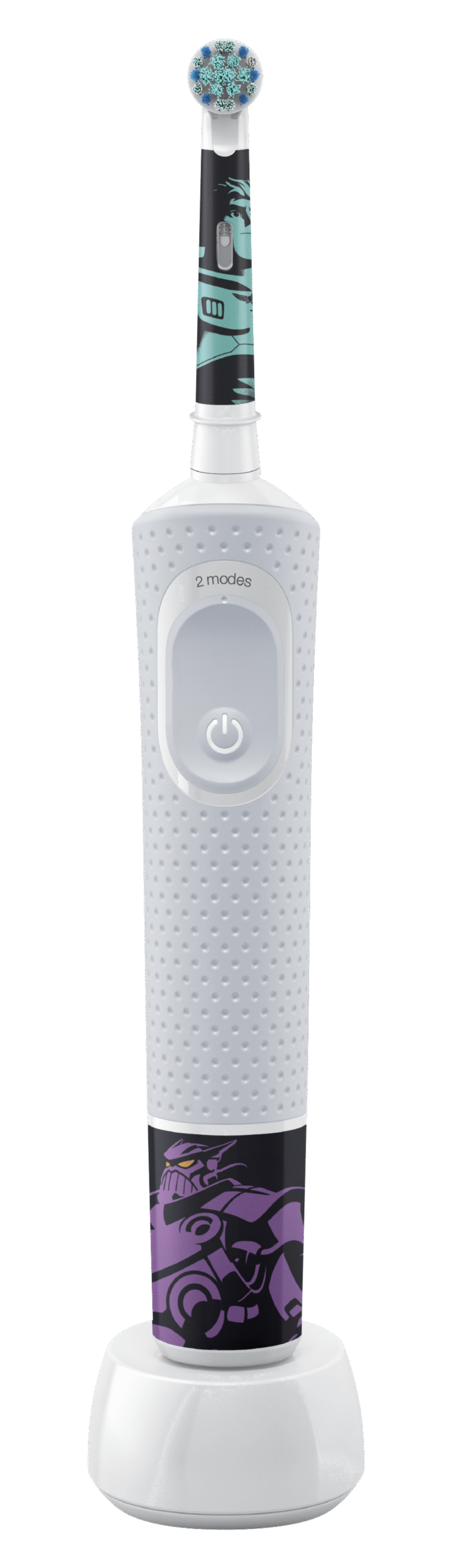 A 3 évesnél idősebb Oral-B Kids elektromos fogkefe a Disney Lightyear szórakozását nyújtja a gyerekeknek a fogorvosok által ajánlott Oral-B fogkefe gyengéd, hatékony tisztításával. A 2 fogmosási móddal, köztük egy egyedülálló, gyerekbarát érzékeny móddal ez a kefe gyengéden tisztítja a gyerekek fogait. Több lepedéket távolít el, mint egy hagyományos kézi fogkefe. Négy Disney Lightyear témájú matrica található a fogantyú testreszabásához.