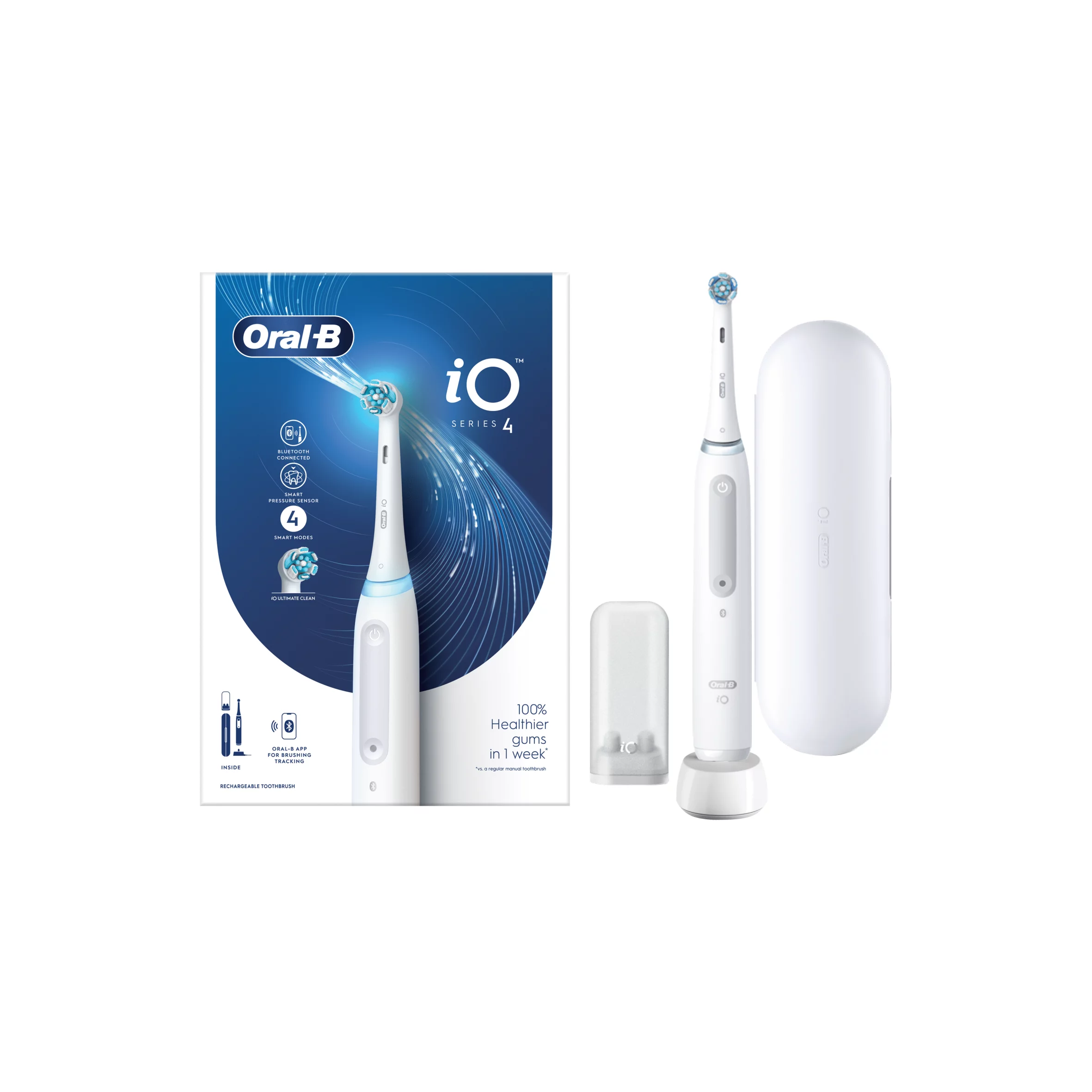 Az intelligens nyomásérzékelő rendszer figyelmeztet, ha túl erős nyomást alkalmaz, és zöld fénnyel jelzi az optimális nyomást. Az Oral-B iO Series 4 négy különböző tisztítási programot kínál, hogy minden egyeséni igény kielégítésére szolgáljon: Napi tisztítás, Fehérítés, Érzékeny és Szuperérzékeny módok. Ezen kívül sárga fény figyelmeztet, amikor ideje cserélni a kefefejet. A beépített kétperces időzítő tájékoztat a javasolt fogmosási idő leteltéről.