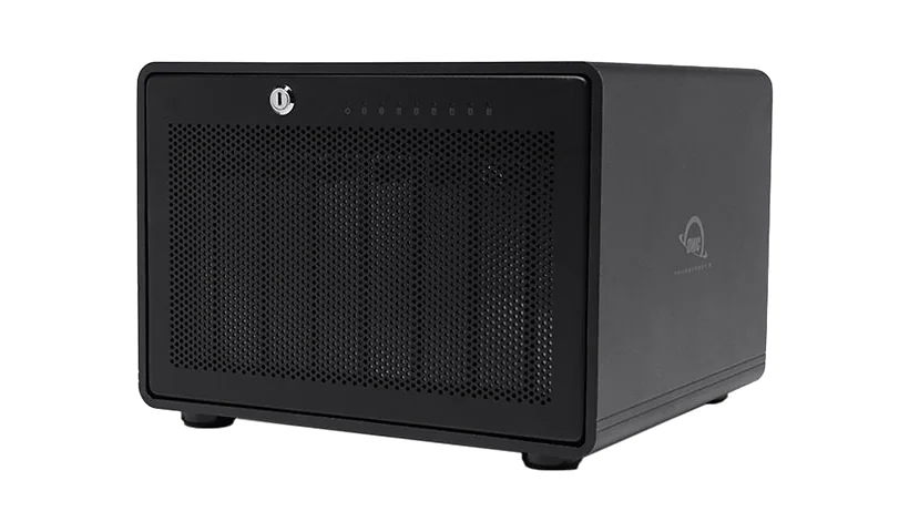 Az OWC ThunderBay 8 nyolc meghajtórekeszt kínál 2,5" vagy 3,5 hüvelykes HDD-khez és/vagy SSD-khez bármilyen kombinációban. A ThunderBay 8 olyan, mint egy hatékony személyes adatközpont, amely számos konfigurációs lehetőséget kínál az egyre növekvő tárolási igények kielégítésére. A fotó-, film- és videószerkesztők kihasználhatják a legnagyobb kapacitású asztali tárolási megoldás előnyeit a RAW, 4K, nagy formátumú és VR-munkafolyamatok kielégíthetetlen tárolási éhségének kezelésére. A Thunderbolt 3-mal, amely akár 2586 MB/s valós átviteli sebességet is kínál, és nyolc SSD vagy HDD használatának képességét kínálja, a ThunderBay 8 masszív, a terepen bevált alumínium kialakítása a motorháztető alatt képes kezelni a nagy sávszélesség-igényeket. Akár több ThunderBay 8 megoldást is konfigurálhatsz Mac-edhez vagy PC-dhez csatlakoztatva több Thunderbolt 3 porton keresztül az exponenciális sebességnövelés érdekében. Bármi legyen is a konfiguráció, ha határidőhöz tartja, a ThunderBay 8 a győztes pályára állítja Önt. Ha még több tárolókapacitásra van szükség, akár hat ilyen kapacitásóriást is csatlakoztathat, hogy akár hihetetlen 768 TB-ot is elérhessen. Most egy egységes és megbízható tárolási megoldással hatalmas mennyiségű felvételt készíthet több kamerából, vagy kiterjedt könyvtárat tárolhat a gyártási munkákról. A ThunderBay 8 nyolc üzem közben cserélhető meghajtórekesze megkönnyíti a nagy adatkészletek rendszerezését bármely projekthez. Akár 2,5", akár 3,5"-os HDD-ket és/vagy SSD-ket használ, a meghajtók betűrendben címkézett rekeszekbe vannak szerelve a könnyű azonosítás érdekében, és csuklós csavarral vannak rögzítve.