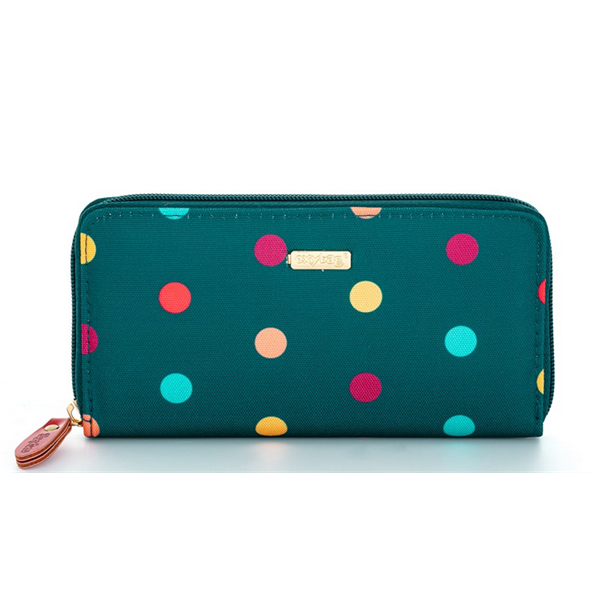 Ez a nagyméretű női pénztárca ideális választás a modern nők számára, akik szeretik a praktikus és divatos kiegészítőket. A sötétzöld alapon elhelyezkedő színes pöttyök nem csak egyedi megjelenést kölcsönöznek ennek a pénztárcának, hanem frissességet és vidámságot is sugároznak.