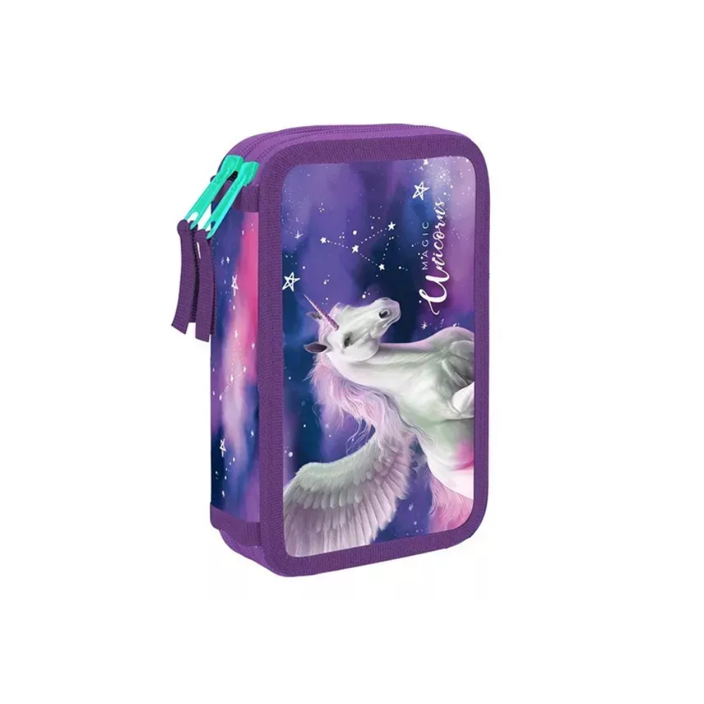 Engedd szabadjára a képzeletedet az Oxybag Töltetlen kétemeletes tolltartóval, amely Pegazus mintás dizájnjával elkápráztatja a gyerekeket! Ez a stílusos és praktikus tolltartó tökéletes választás minden iskolás számára, aki szereti a mesebeli lényeket és a rendszerezett eszközöket.
