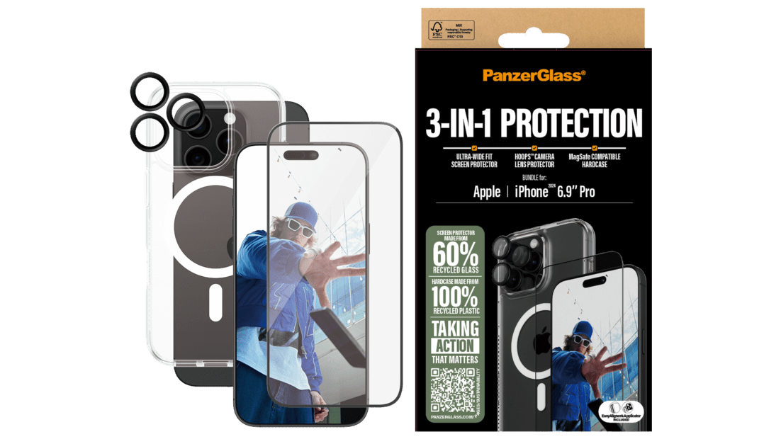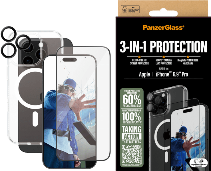 Óvd meg készülékedet a PanzerGlass prémium minőségű 3in1 védőcsomagjával! Ez a különleges csomag mindent tartalmaz, amire szükséged van ahhoz, hogy iPhone 16 Pro Max készüléked mindig biztonságban legyen.