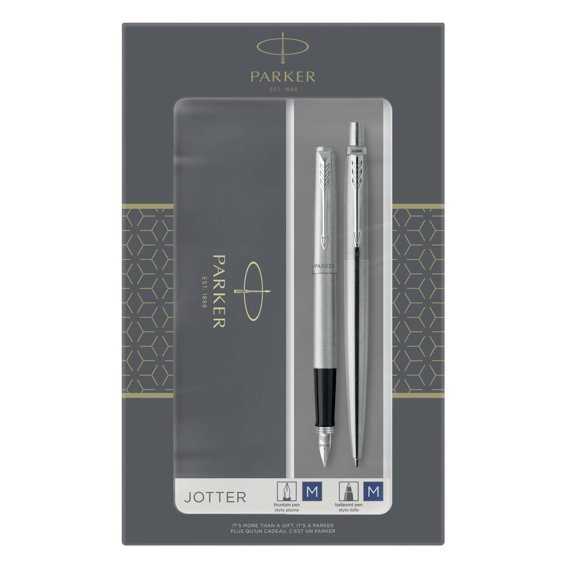 Mindkét toll ezüst-fekete színben kapható, kék betűszínnel és közepes (M) vonalszélességgel, így bármilyen írási igényt kielégítenek. A készlet egy exkluzív Parker ajándékdobozban kerül forgalomba, amely tökéletes ajándékká teszi mind a személyes, mind az üzleti alkalmakra.