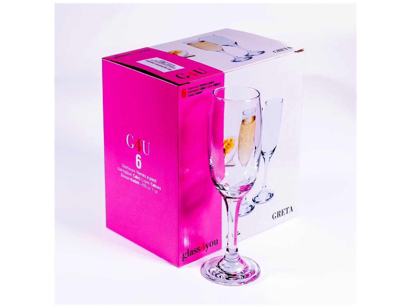 A GLASS 4 YOU Greta Champagne pezsgős pohár szett tökéletes választás, ha különleges alkalmakat szeretnél emlékezetessé tenni. Az exkluzív dizájn és a kifinomult megjelenés biztosítják, hogy a legmagasabb színvonalon élvezhesd kedvenc pezsgődet.