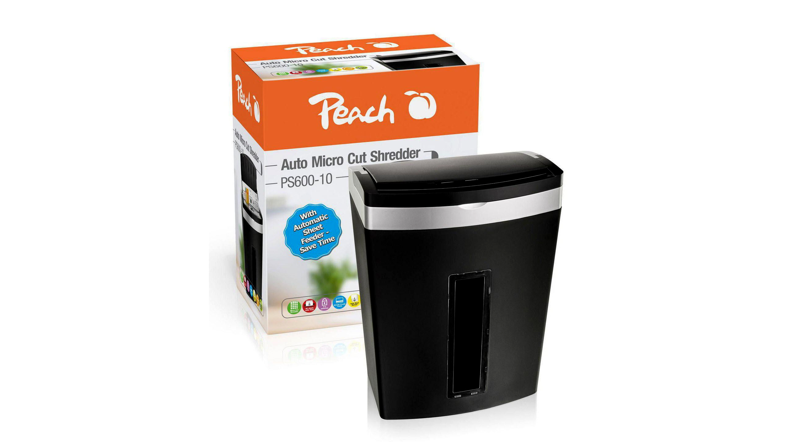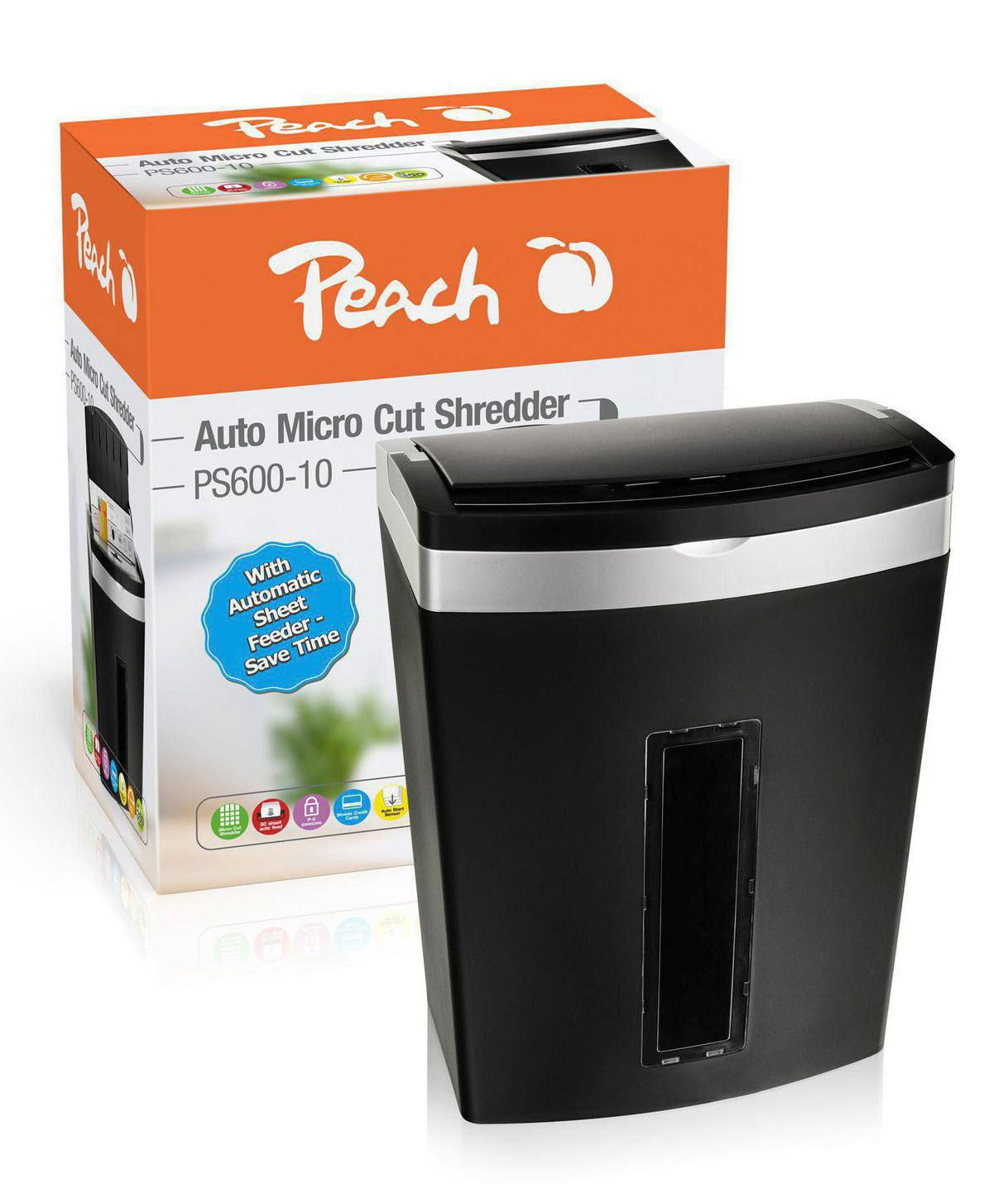 - Peach PS600-10 Micro Cut aprító, időtakarékos automatikus papíradagolóval rendelkezik, a szokásos 2-3 perc helyett 10 percig tartó folyamatos működéshez, vagy 400 lap fölött.