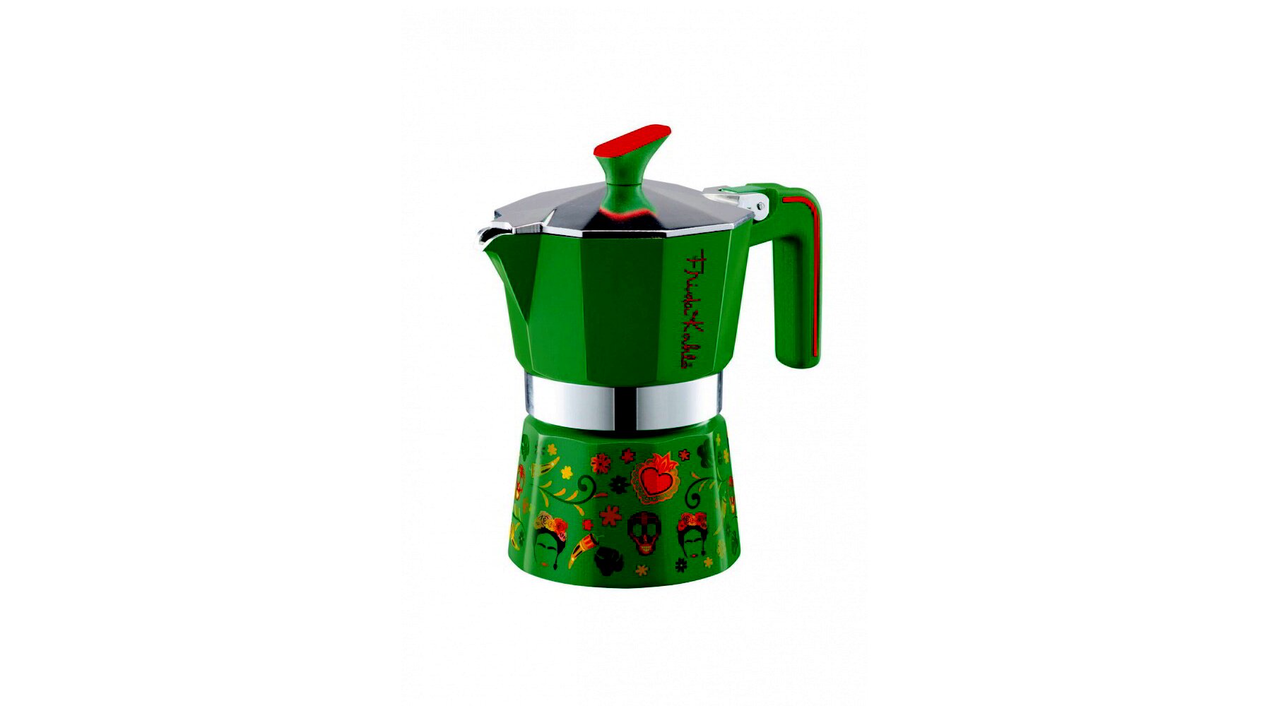 Frida Kahlo művészetét ünnepli ez a gyönyörű Pedrini 1TZ Frida Kahlo 1 személyes kotyogós kávéfőző, amely zöld színével és egyedi dizájnjával minden konyhában kitűnik. A Pedrini márka híres minőségi konyhai eszközeiről, és ez a kávéfőző sem kivétel! Készítsen finom és aromás eszpresszót ezzel a praktikus és stílusos eszközzel, amely garantáltan örömet okoz minden kávéimádónak.