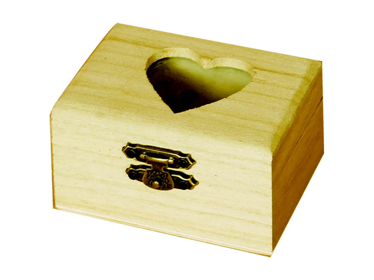Romantikus, szívbetétes fa minidoboz kreatív alkotásokhoz