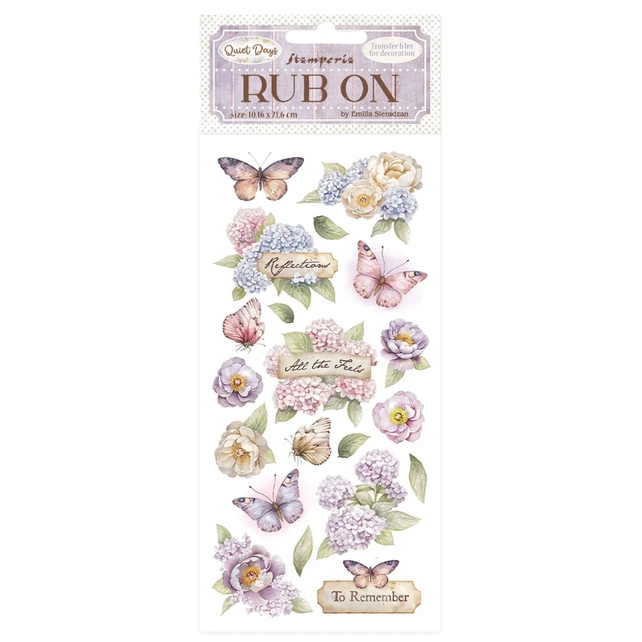 A Rub-On kaparós matricák különlegessége, hogy a minta egy vékony, szinte észrevehetetlen rétegben kerül át a felületre – ez adja a festett, illusztratív hatást. A vintage, shabby chic, romantikus vagy botanika jellegű projektekhez különösen népszerűek az olyan motívumok, mint a hortenzia és a pillangó, mert finoman díszítenek, mégsem uralják el az egész kompozíciót.
