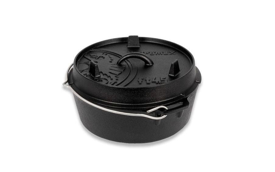 A Petromax Feuertopf FT4.5 öntöttvas lábas a szabadtéri főzés igazi mestere. Kialakítása révén tökéletesen alkalmas arra, hogy kerti sütés-főzés során készítsük el kedvenc ételeinket. Az öntöttvas anyag kiváló hőmegtartó képességgel rendelkezik, így az étel egyenletesen melegszik fel, és sokáig tartja a hőt. Ennek köszönhetően a használat során gazdaságosan tudjuk kezelni a tüzet, és az ételeink mindig tökéletesen sikerülnek.