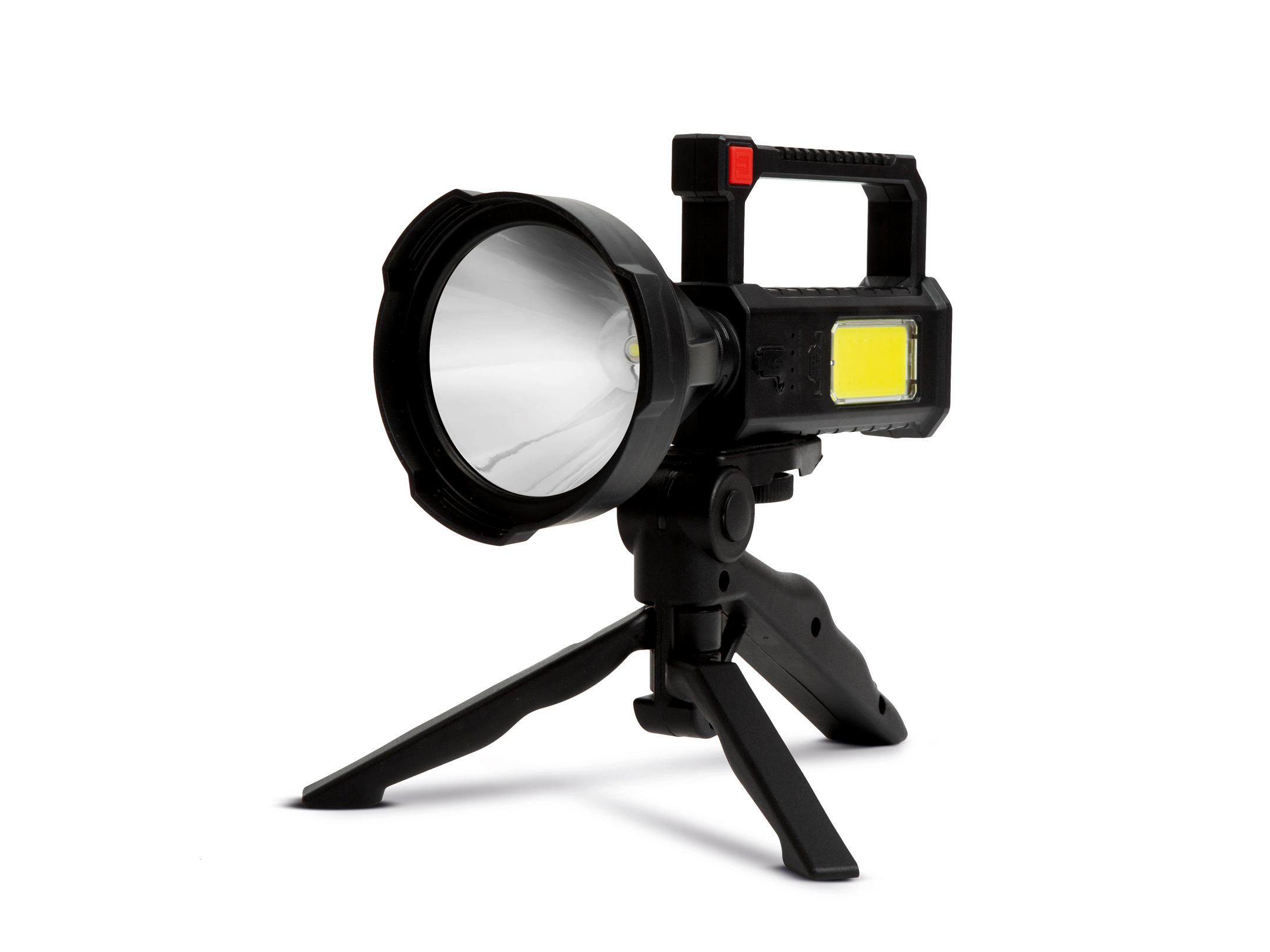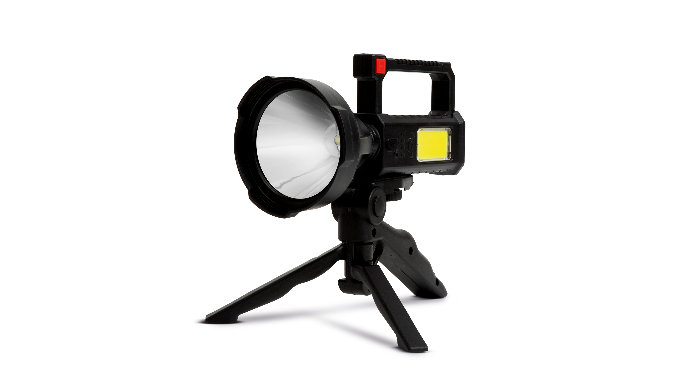 Strapabíró kialakítású, kisméretű, mégis óriási fényerővel rendelkező keresőreflektor, amely akkumulátoros működésének köszönhetően hosszantartó működést garantál. A nagyteljesítményű, extra fényerővel rendelkező, XPE50-es CREE LED, akár 200 méter szúrófényt is képes kibocsátani magából, így minden körülmények között számíthat rá. Az ergonomikus ház IP55 védelemmel rendelkezik, így esős, párás időben is kiváló szolgálatot nyújt. A lámpa kényelmes használatát kétféle csúszásmentes, bordázott fogantyú garantálja, mely közül az egyik háromlábú tripoddá is alakítható, így bárhová elhelyezve állandó fényként világítja meg a munkaterületet. Ideális felszerelése lehet túrázóknak, vadászoknak, horgászoknak, keresőcsapatoknak, biztonságiőröknek vagy akár hatóság embereinek is.