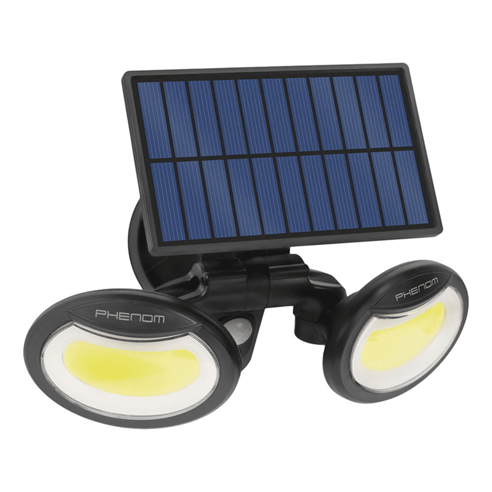 Nagyteljesítményű mozgásérzékelős fali reflektor, amely kettő forgatható COB LED és 1 db nagyméretű szolár egységből áll. A két tengely mentén forgatható LED-ek szabadon állíthatóak, így garantáltan minden körülmény között bevilágítják a szükséges területet. Ideális lehet teraszok, bejáratok, kocsibeállók megvilágítására. A napelemes kialakításnak köszönhetően, nincs szükség kábelezésre, villamos hálózat kiépítésére, könnyen felszerelhető a falra. Sötétben, kevés fény esetén mozgás hatására automatikusan bekapcsolja a COB LED fényforrást. A világítás ~20 mp elteltével automatikusan lekapcsol. Napközben a napelemnek köszönhetően újra feltöltődik a beépített akkumulátor. A bekapcsoló gombot megnyomva a lámpa villanása jelzi a beállított világítási üzemmódot. A gomb újbóli megnyomásával válthat a módok között. A teljes szolár panelt letakarva tesztelheti a beállítások és a mozgásérzékelő működését.
