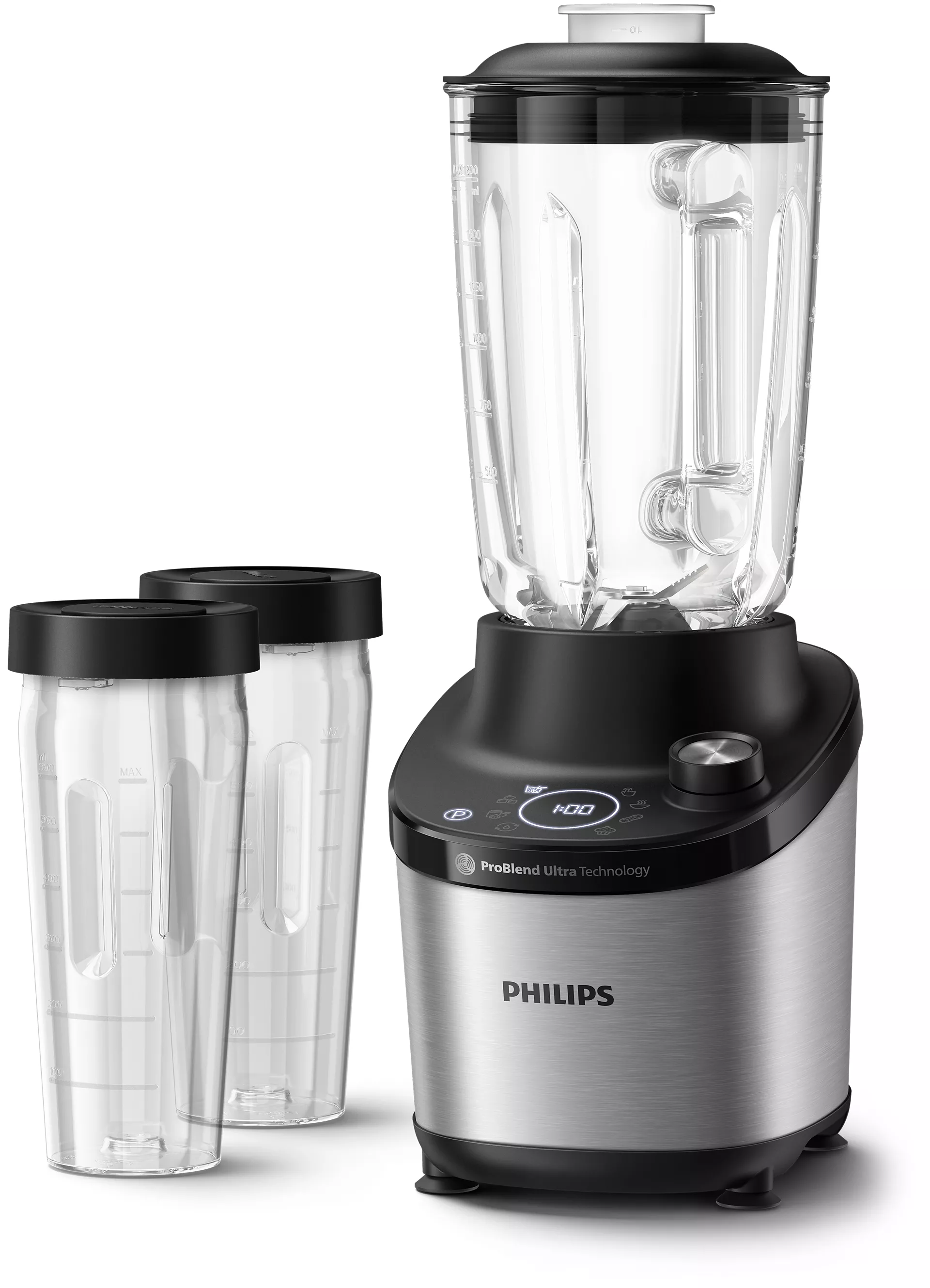 Két átlátszó és tartós, BPA-mentes Tritan pohár. Készítse el kedvenc italait kisebb mennyiségben, két különálló pohárban, az útközbeni fogyasztásra. A ProBlend Ultra motor erős, 1500 W-os teljesítményt biztosít a turmixolás meghajtásához és az alapanyagok egyenletes keringetéséhez.