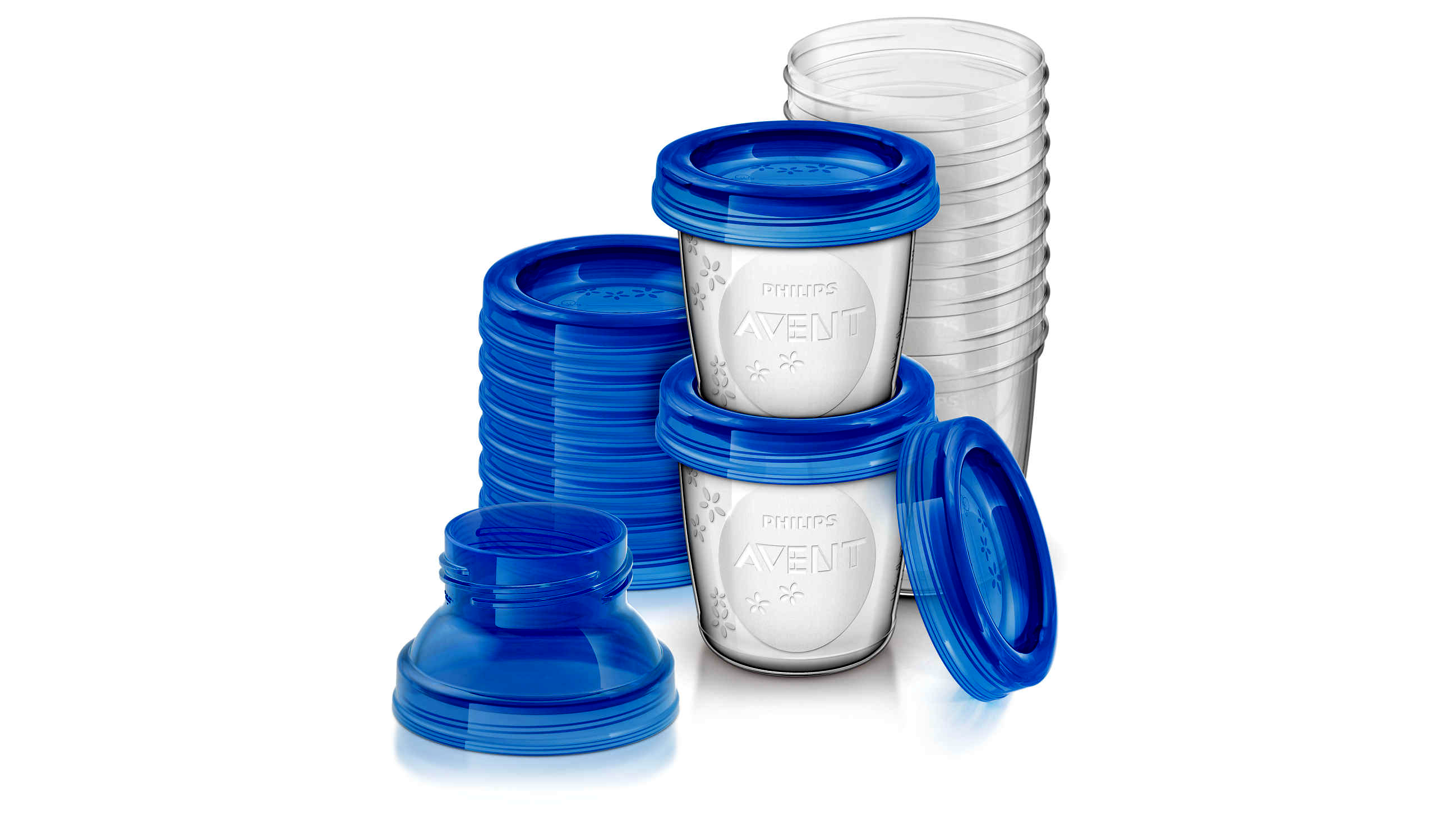 A Philips Avent tárolópoharak biztonságosan záró fedéllel rendelkeznek, így biztos tárolást és szállítást tesznek lehetővé.