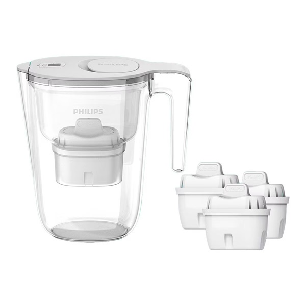 A Philips vízszűrő kancsó ergonomikus és modern dizájnja minden konyhába illik. A nagy kapacitású, 2,6 literes víztartály lehetővé teszi, hogy megfelelő mennyiségű vizet tartson fenn, míg a szűrt víz mennyisége 1,9 liter, mely ideális családok számára. Az extra 2 db szűrő garantálja a hosszabb ideig tartó használatot.