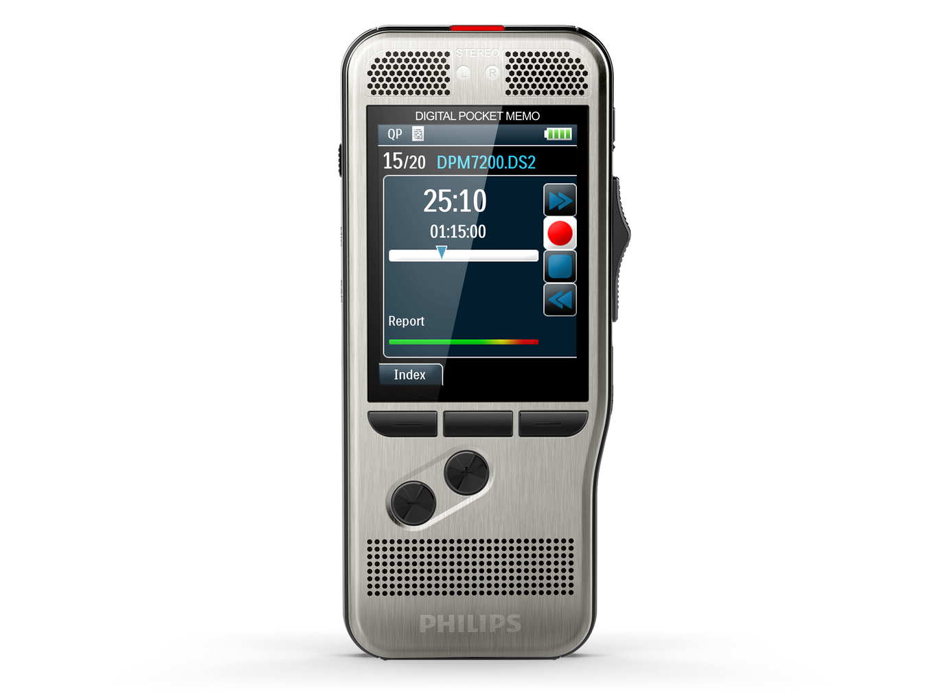 A PocketMemo új szintre emeli a diktálási megoldásokat. Két mikrofonjának köszönhetően kiváló hangminőséget biztosít a diktálása során. A robusztus, mégis könnyű rozsdamentes acél kialakítása tökéletes ergonómiát nyújt a hosszabb idejű munka során. A klasszikus üzemmód az analóg eszköz "megjelenését és érzését" nyújtja, miközben élvezheti a digitális technológia előnyeit.
