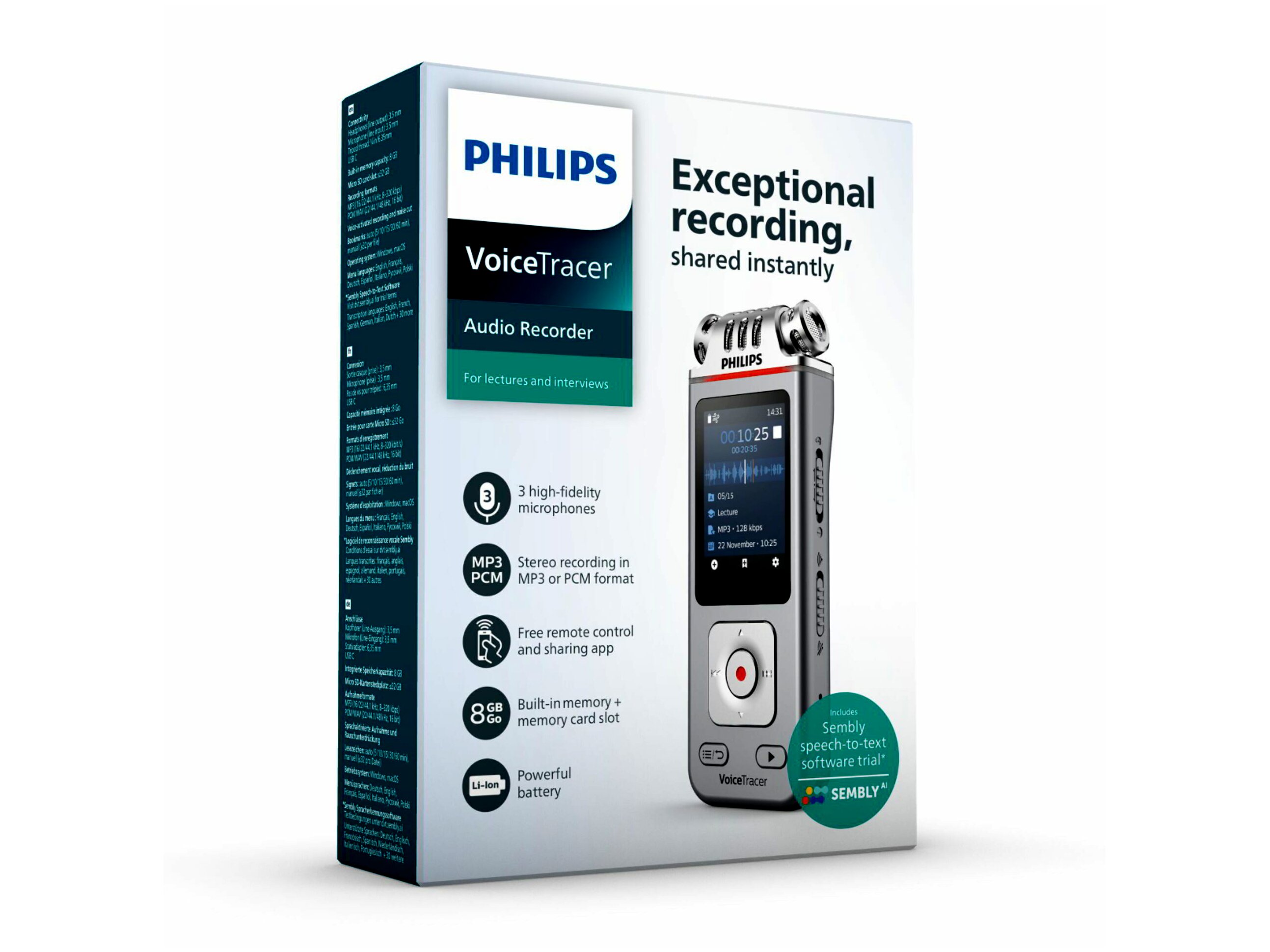 A Philips DVT4115 egy modern, hordozható hangrögzítő, amely kimagasló hangminőséget és kivételes sokoldalúságot kínál. Három nagy érzékenységű mikrofonját a részletekben gazdag, tiszta hangrögzítésre tervezték, akár 2147 órányi felvételi idővel.