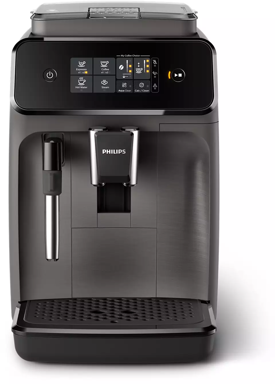 A klasszikus tejhabosító gőzt bocsát ki, ennek köszönhetően Ön könnyedén készíthet lágy habot cappuccinójához. Mindössze két részből áll, így a klasszikus tejhabosító tisztítása szintén egyszerű. A kávé kávészemekből áradó ellenállhatatlan íze és aromája most egyetlen érintésre van Öntől. Intuitív érintőkijelzőnk segítségével könnyedén kiválaszthatja kedvenc kávéját. Állítsa be a kávé erősségét és mennyiségét a My Coffee Choice menüben. A három különböző beállítás közül könnyedén kiválaszthatja az igényeinek megfelelőt.