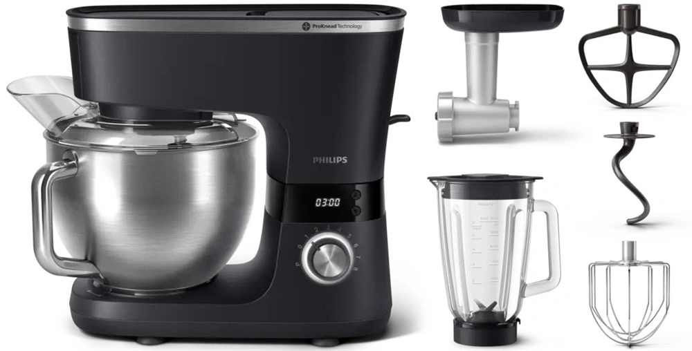 A Philips HR7962/21 robosztus teljesítménye révén könnyedén megbirkózik a legnehezebb tésztákkal is. A 5,5 literes keverőtál segítségével nagy mennyiségű alapanyagok is egyszerre feldolgozhatók, ami rendkívül praktikus nagyobb családi vagy baráti összejövetelek alkalmával. Különböző tartozékaival és funkcióival sokoldalú megoldást nyújt a konyhai előkészületekhez.
