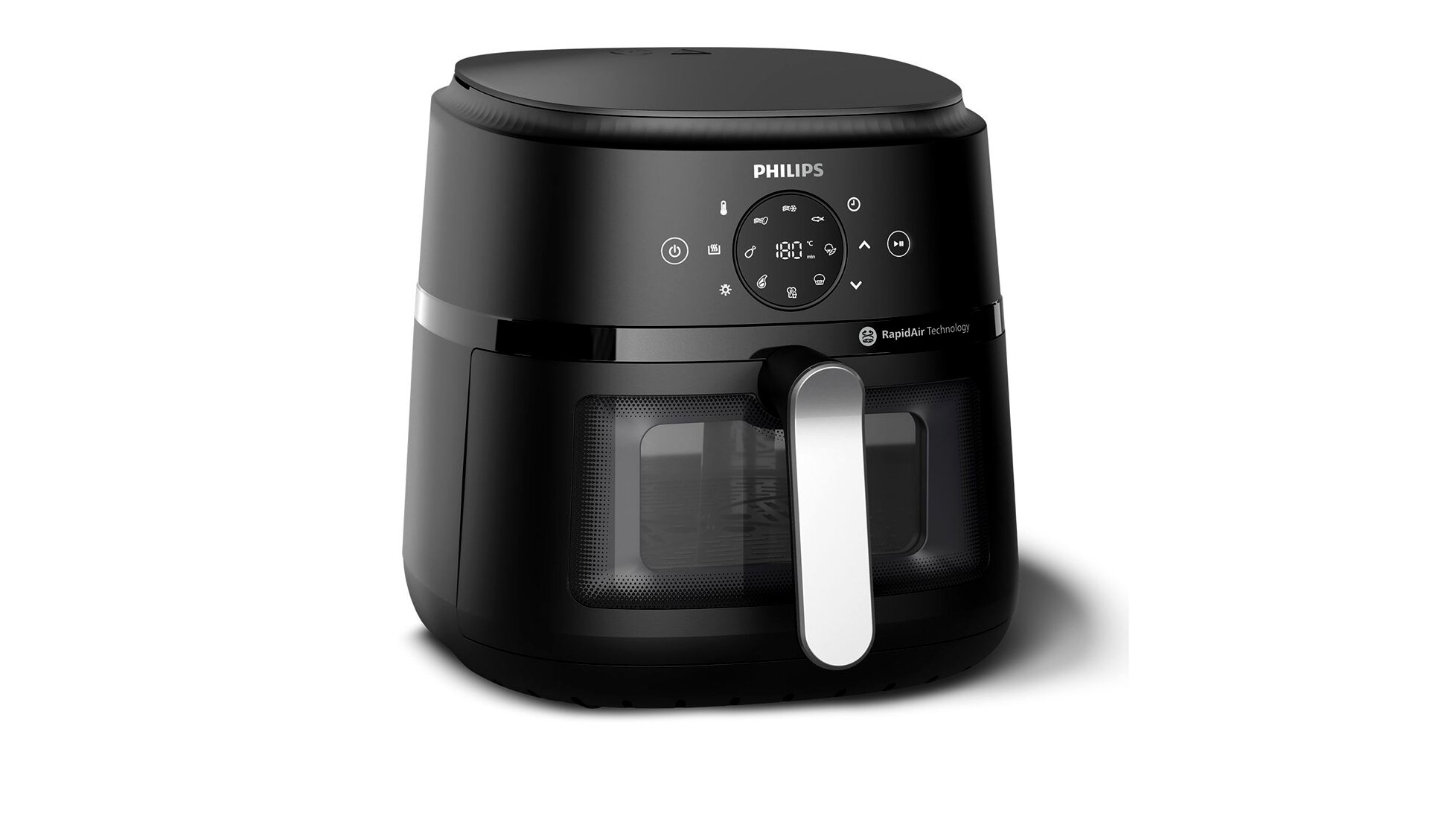 A betekintőablak segítségével mindig szemmel tarthatja az étel készülését, míg az érintőképernyő 9 előre beállított funkciót kínál, mint a fagyasztott hasábburgonya, friss hasábburgonya, csirkecomb, hús, hal, reggeli, zöldségek, sütemény és melegen tartás.