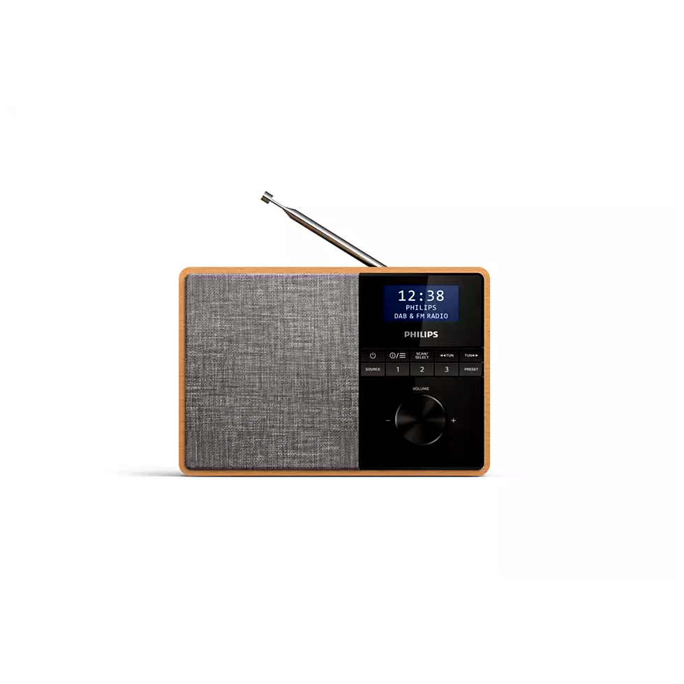 A világos faburkolat körbeveszi a fényes, fekete kijelzőpanelt és a hangszórót, amelyet szürke hangszórószövet fed. A rádió elején található gombokkal lehet hangolni, kiválasztani a forrást stb. A hangerőt egy elegáns forgótárcsával lehet szabályozni.