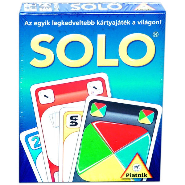 Az egyik legkedveltebb kártyajáték a világon! Mindenki kap 8 lapot. Aki elsőként lerakja a lapjait, az nyer. De vigyázat! Az akciókártyák mindent a feje tetejére állítanak és meglepő fordulatokat okoznak! A Solo a világ egyik legkedveltebb kártyajátéka. Akciókártyák, szédületes akciók!