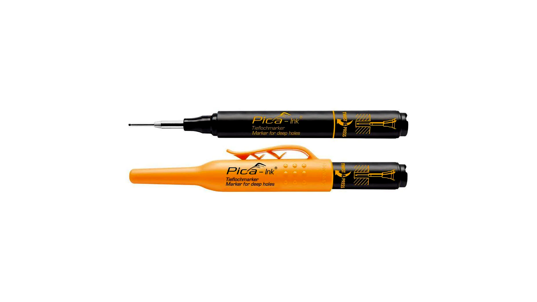 A Pica 150/46 markerek meghosszabbított, rozsdamentes acélból készült hegye önbeállítható, ami háromszoros jelölési kapacitást biztosít. Amikor a hegy elhasználódik, egyszerűen megfordítható, ami további több élettartamot kínál. A pracitkus cső speciális klipsze lehetővé teszi, hogy a markert egy kézzel is könnyedén használhassa.