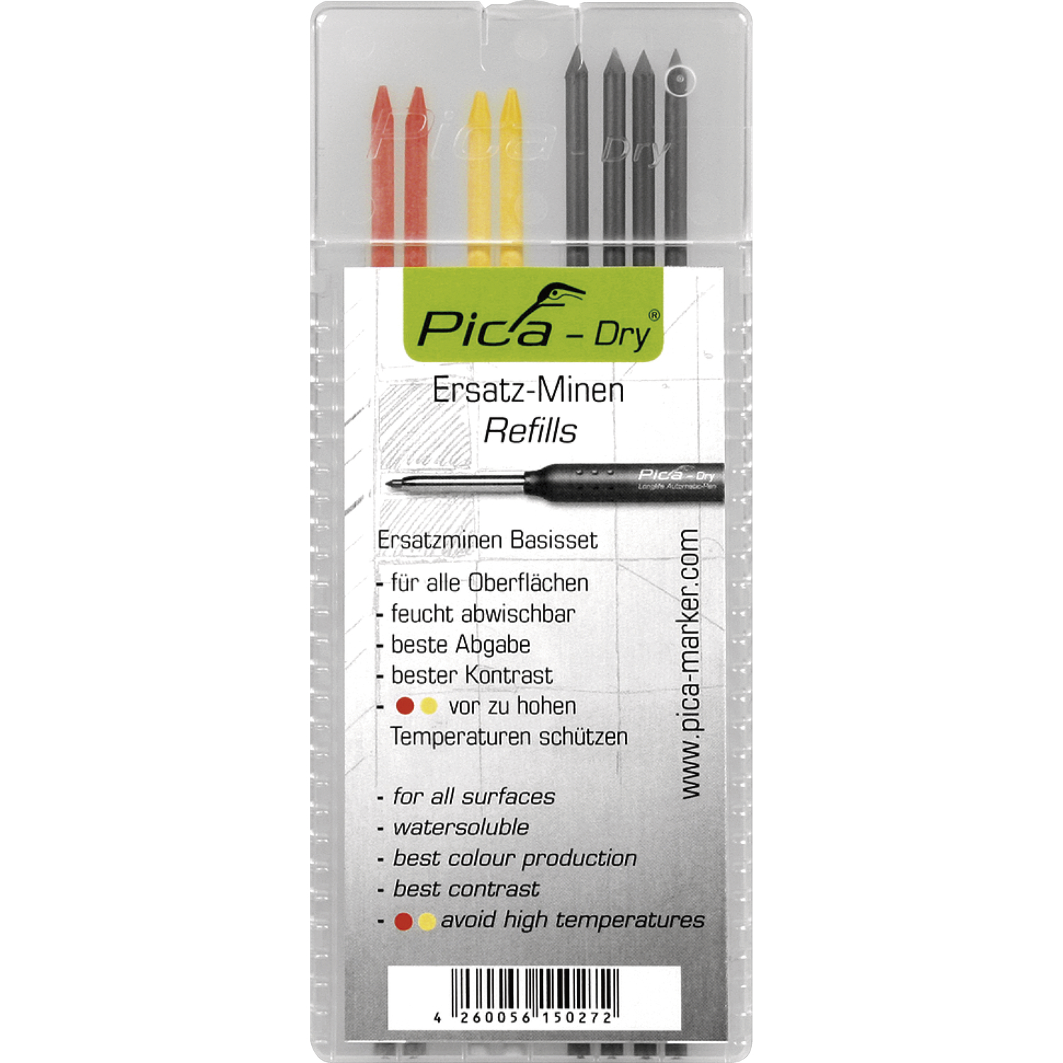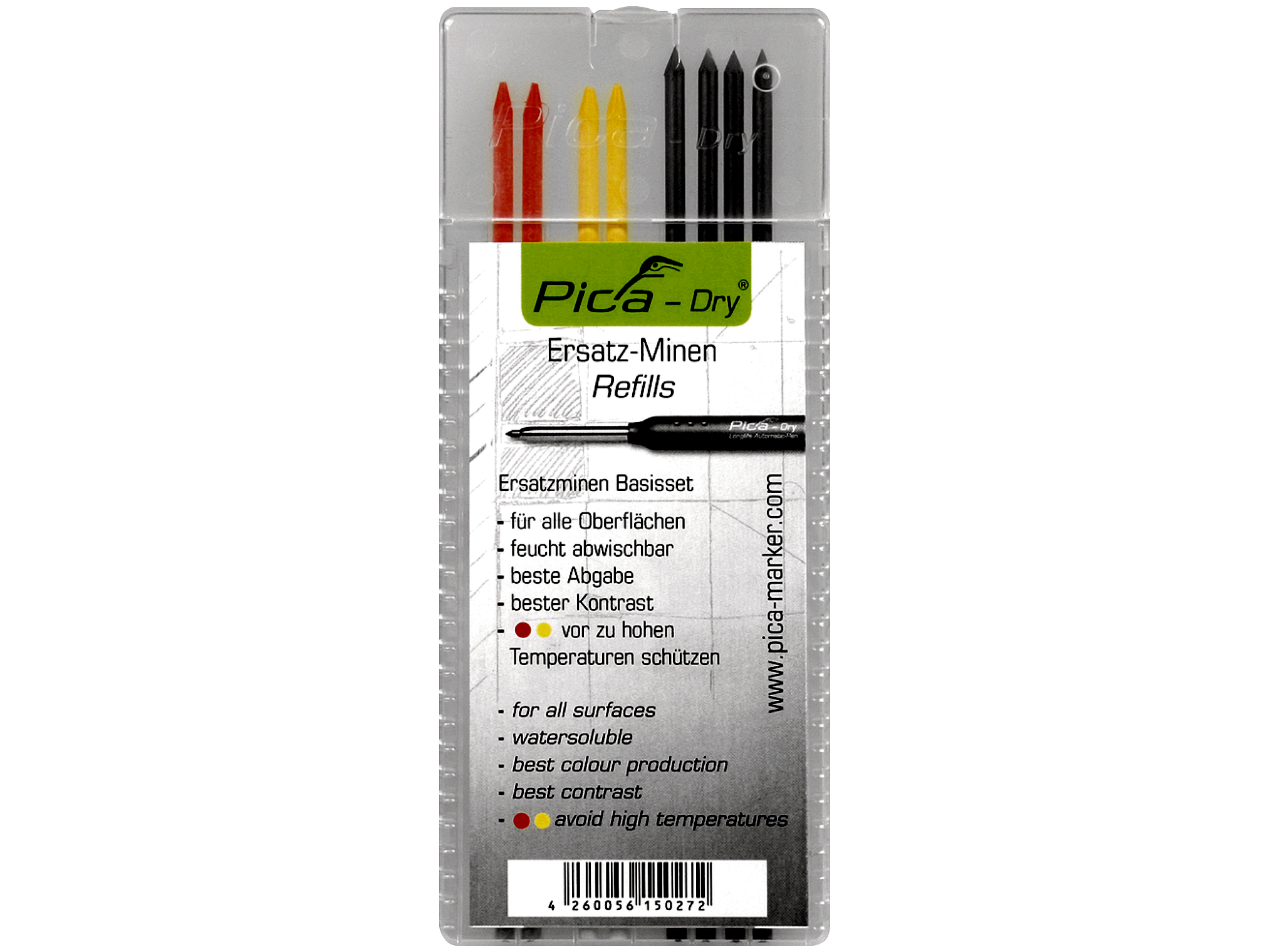 Fedezd fel a Pica 4020 DRY jelölő ceruza utántöltő készlet előnyeit, amely tökéletesen kiegészíti Pica Dry jelölődet. Legyen szó bármilyen felületről, ez a készlet garantálja, hogy mindig tiszta és pontos jelölésekkel dolgozhass!