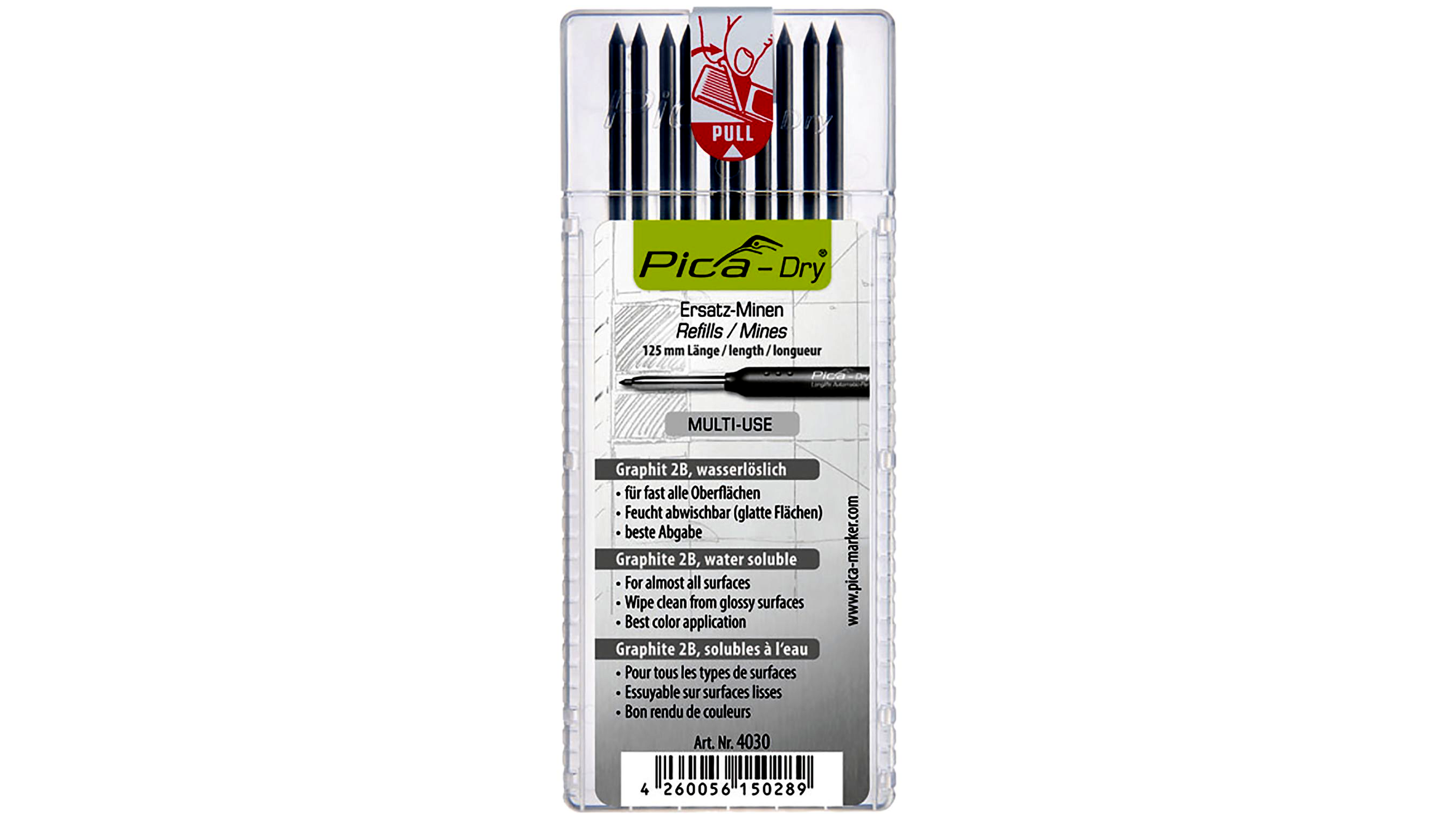 A Pica 4030 DRY jelölő ceruzabetét a mindennapos munkák nélkülözhetetlen eszköze lehet. Ezek a 2,8 mm átmérőjű grafit betétek számos felületen megállják a helyüket, legyen szó száraz vagy nedves, sima vagy durva, poros vagy olajos környezetről. A betétek vízben oldódó technológiájának köszönhetően a jelölések szükség esetén nedves ruhával könnyedén eltávolíthatók.