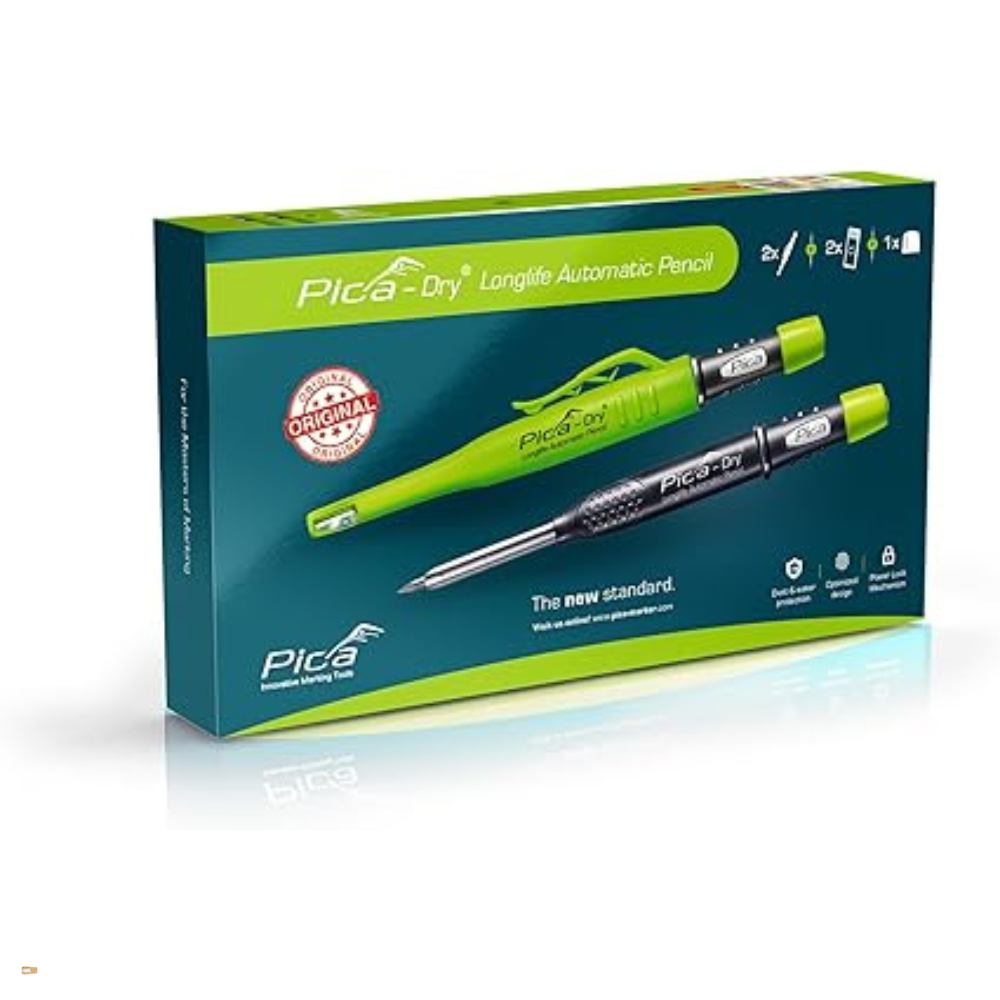 A Pica Dry Promo Pack egy komplett, profi jelölőkészlet, amelyet kifejezetten mesterembereknek, szerelőknek, burkolóknak, ácsoknak és barkácsolóknak fejlesztettek ki. A készlet magja a jól ismert Pica Deep Hole jelölőceruza, amelyhez praktikus tartozékok és betétek társulnak, így szinte bármilyen felületen és munkakörnyezetben pontosan, tisztán és biztonságosan lehet jelölni.