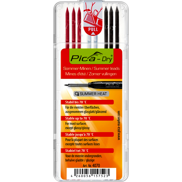 A Pica DRY nyári jelölőmarker ideális választás villanyszerelők, ácsok, építkezési szakemberek és mindenki számára, aki meleg környezetben dolgozik. A termék különösen hasznos olyan helyzetekben, ahol a hő és a nedvesség kihívást jelenthetnek.