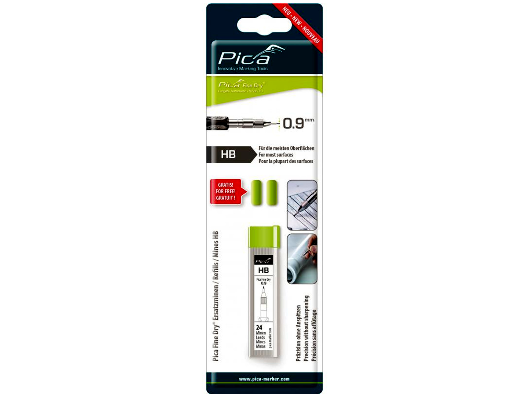 Ez a nyomósirón készlet ideális finom és pontos jelöléshez, és a Pica által kínált magas minőségű eszközök közé tartozik. A mindössze 0,9 mm-es speciális ólomátmérőnek köszönhetően a jelölések élesek és pontosak maradnak élezés nélkül.