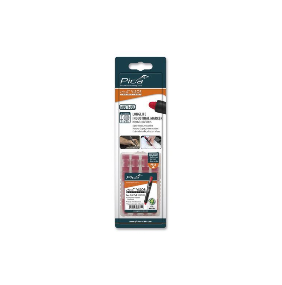 A Pica Visor aknák állandó markerekkel és a Pica VISOR Longlife ipari jelölőkkel kompatibilis permanent jelölőkréta utántöltő ideális választás minden mesterember számára. Szinte minden típusú felületen használható, legyen az száraz vagy nedves, sima vagy durva, poros vagy olajos, világos vagy sötét. Ez a piros színű változat kiválóan alkalmas különböző jelölési feladatokra.