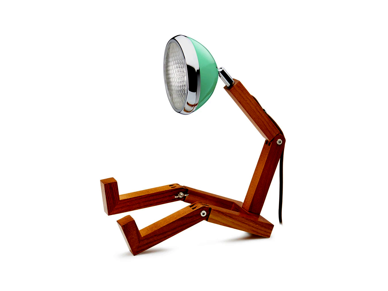 A Mr. Wattson asztali lámpa teste prémium minőségű kőrisfából készült, amely egyedi textúrájával és természetes szépségével azonnal magára vonja a figyelmet. A lámpa fejét egy 1946-os Vespa fényszóró ihlette, amely retro stílusával nosztalgikus érzéseket kelt.