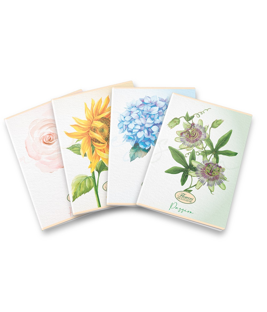 A Flower Special füzetek borítói csodálatos akvarell stílusúak, négyféle gyönyörű mintával: napraforgó, hortenzia, golgotavirág és rózsa. A minták harmonikusak és esztétikailag kellemesek, ami különlegessé teszi mindenek előtt a mindennapi használatot.