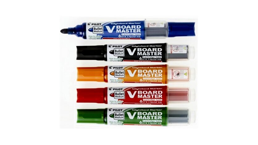 - 5 db marker (fekete, piros, kék, zöld és narancssárga)