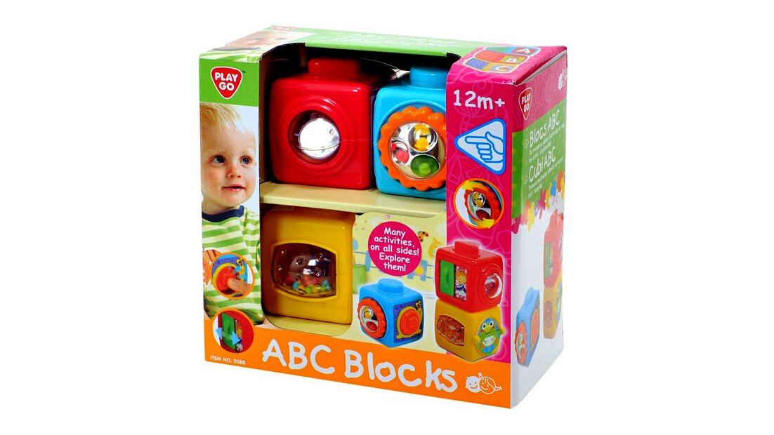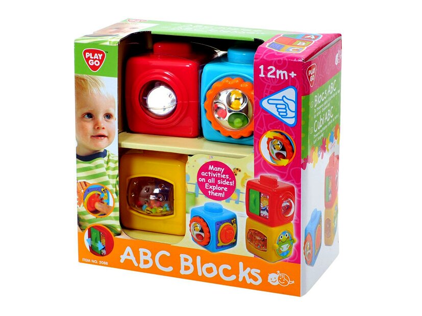 Műanyagból készült, csörgő-zörgő ABC kockák készségfejlesztő bébijáték, vegyes színekben. A csomag három ABC kockát tartalmaz, minden oldalukon más és más meglepetéssel. A kockákon csörgő-zörgő játékok, állatfigurák, számok és betűk is megtalálhatók, a kockák nagyon jól fejlesztik a megfigyelést és a kézügyességet is. Az ABC kockák egymásra tehetők, így a gyermek a toronyépítést is gyakorolhatja. Kockák élhosszúsága: 7 cm.