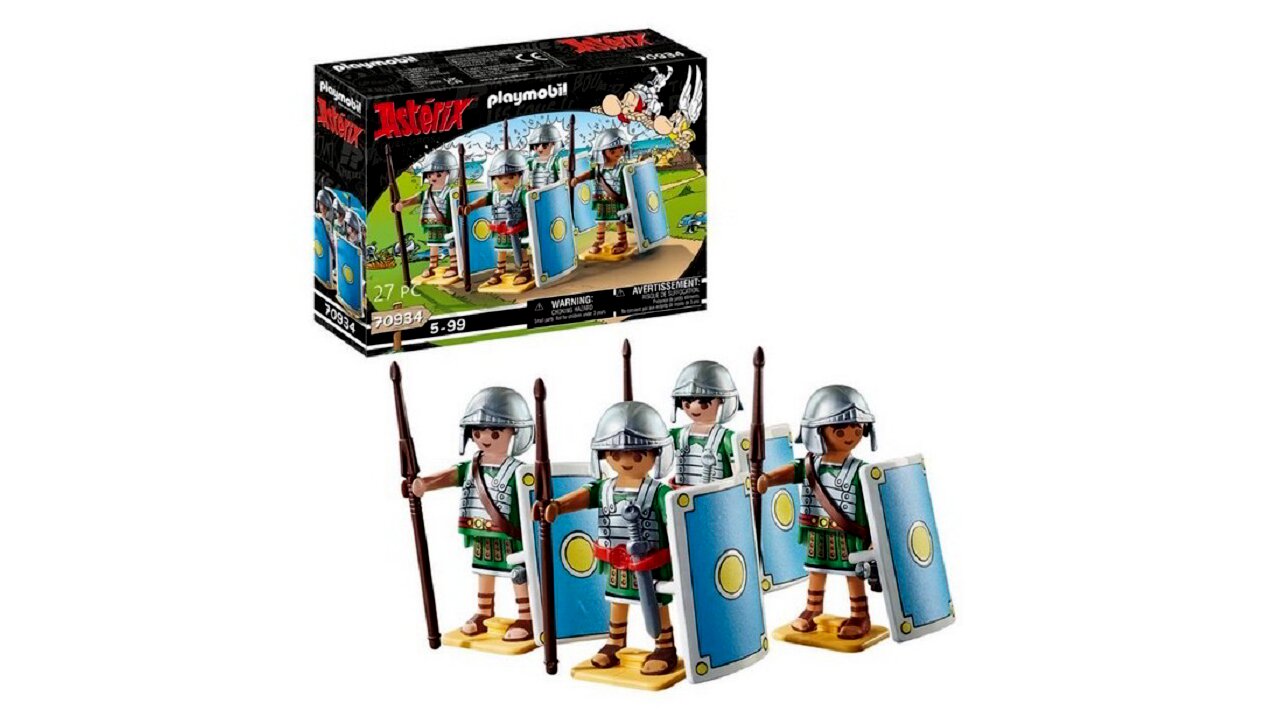 A Playmobil 70934 Asterix: Római légió készlet a híres római katonák pajzsképződési taktikáját mutatja be. Ebben a formációban a katonák pajzsokkal védik magukat elölről és felülről, így akadályozva meg a gallok támadásait. De Asterix, Obelix és a falusiak nem adják fel, hiszen mindig kéznél van a varázsital, amely erőt ad a küzdelemhez.